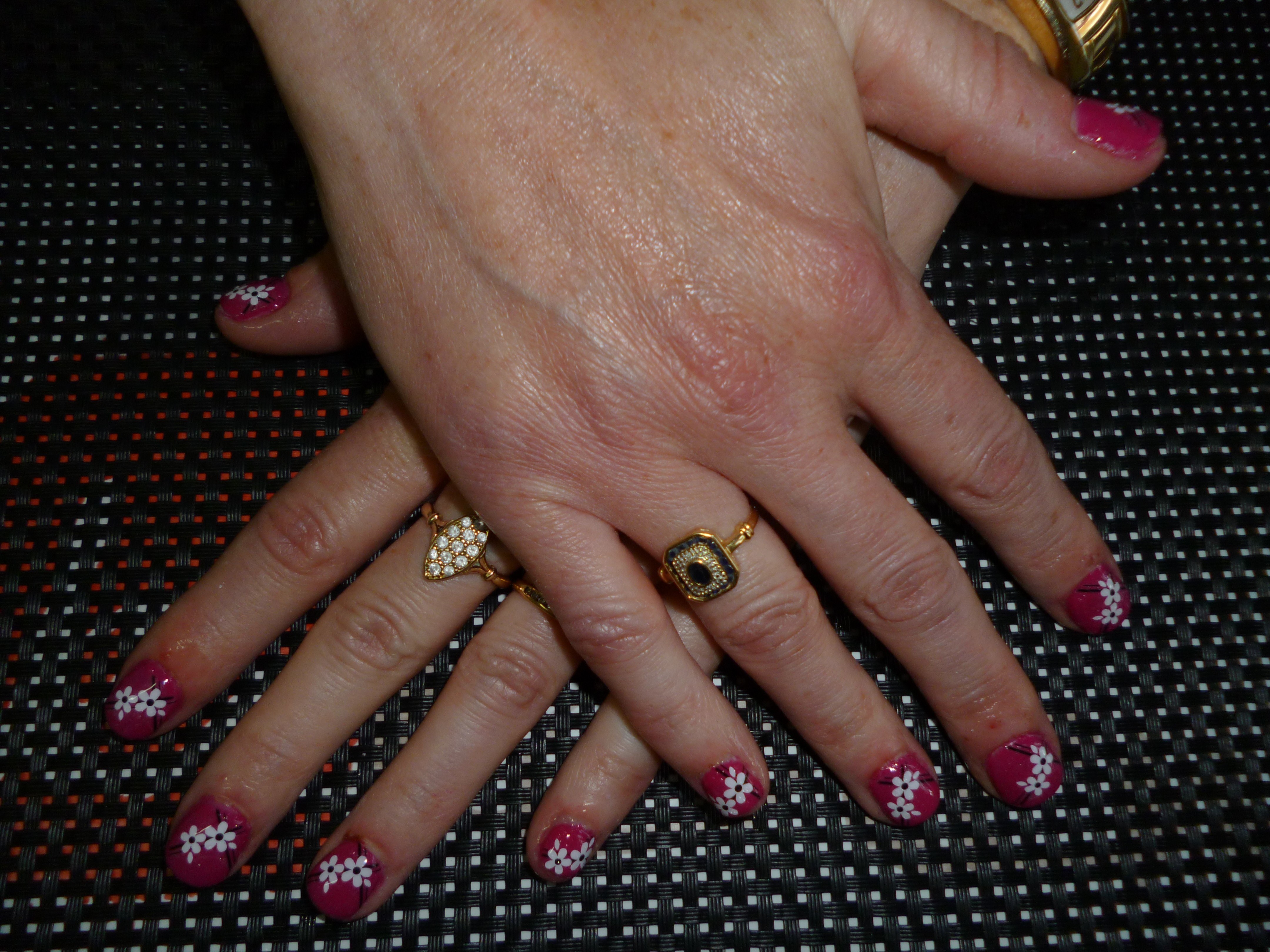 En fait sur la dernière photo, la main du dessus, pour le petit doigt et l'annulaire, je vois pas bien si ce sont les cuticules qui sont mal repoussées ou bien si c'est toi qui a posé le vernis trop loin. Donc dans tous les cas, pense a repousser les cuticules de façon à ce que ce soit un joli arrondi, ensuite quand tu applique ta matière essai de suivre cet arrondi de très près mais sans toucher les bords, car sur certains doigts j'ai l'impression que tu touches les cuti.