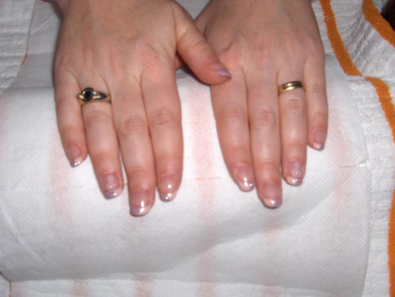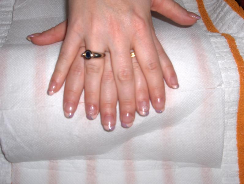 Par contre, je ne sais pas si c'est la photo ou pas, mais on dirait qu'il y a un creux entre la french et le bombé ? Si c'est le cas, tu peux combler avec un peu de gel transparent avant de faire la finition pour que la surface de l'ongle soit plus harmonieuse.