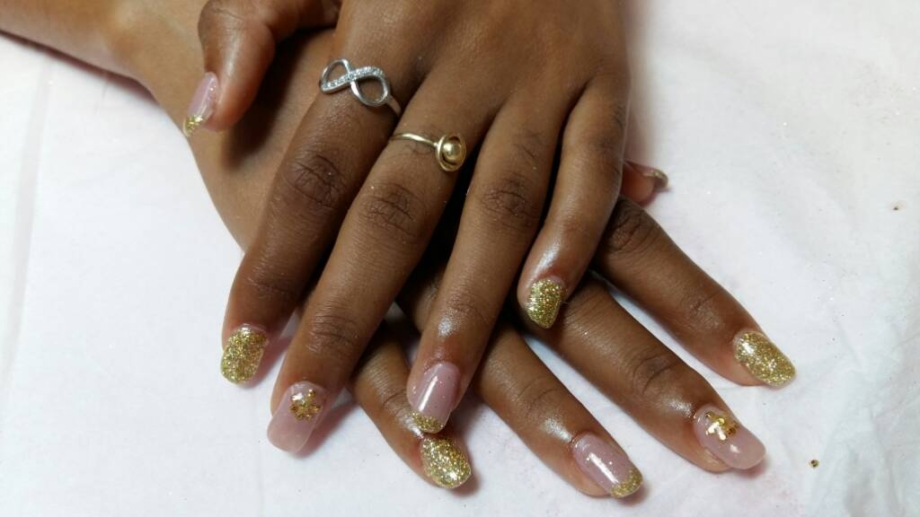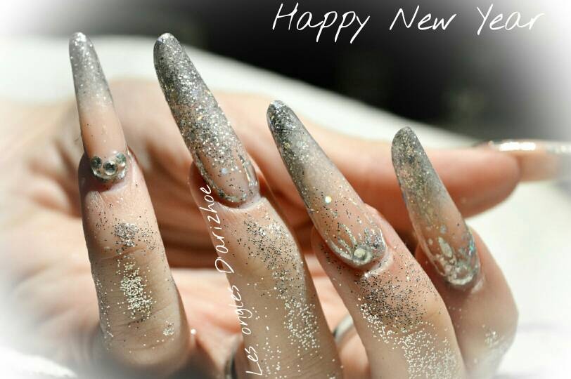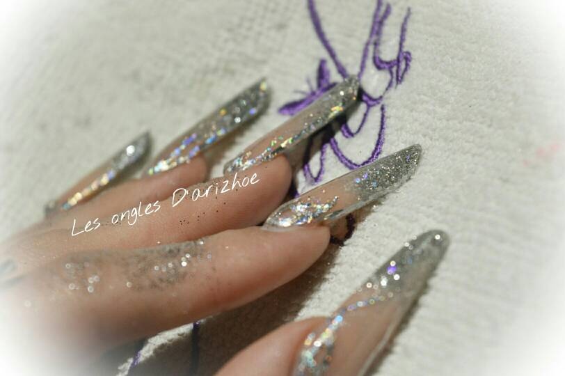 voici la pose faite sur ma fille avec pierre liquide pour la boule de Noël et effet sucre sur le bonhomme de neige
