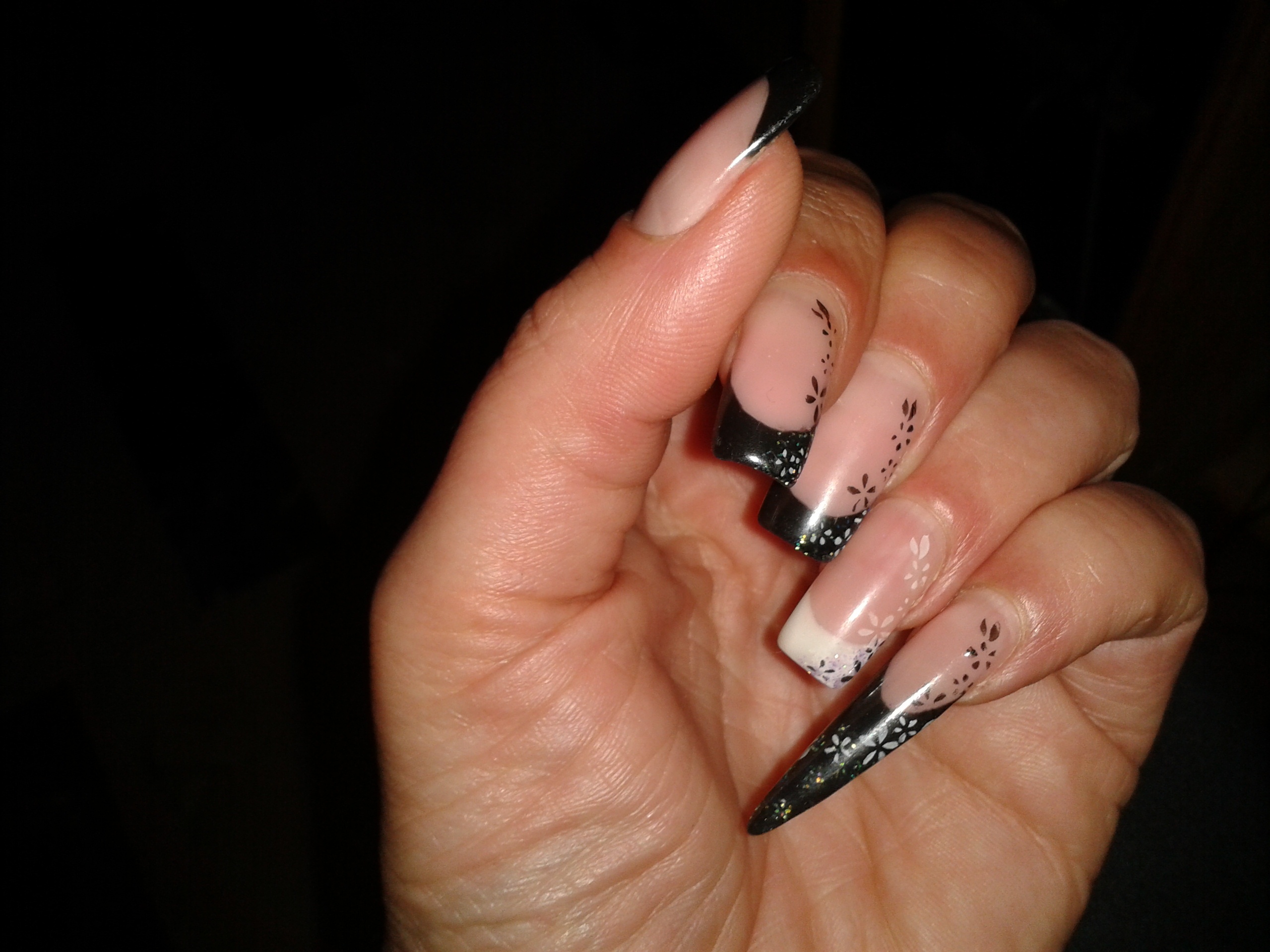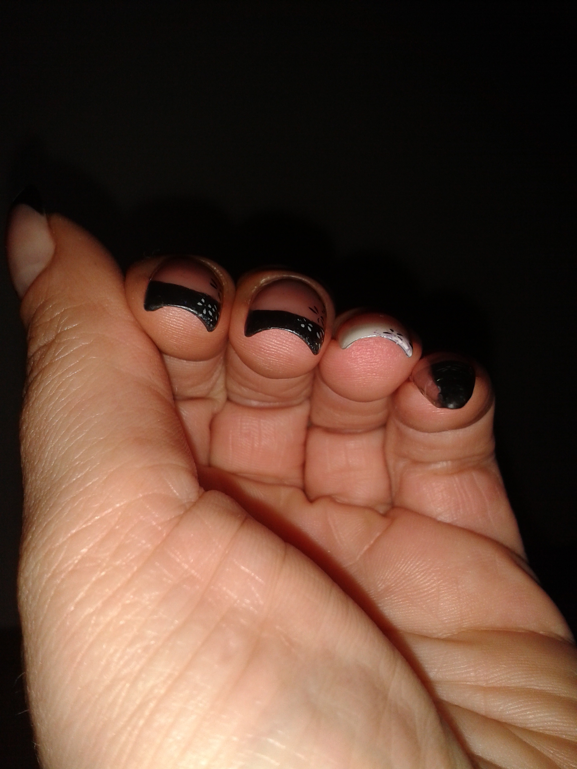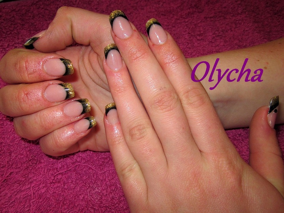 Mon humble contribution (la pose avait déjà deux semaines). Tout en gel Reforma (Sauf french : clear multifonction de chez Adnails avec fard à paupière noir)