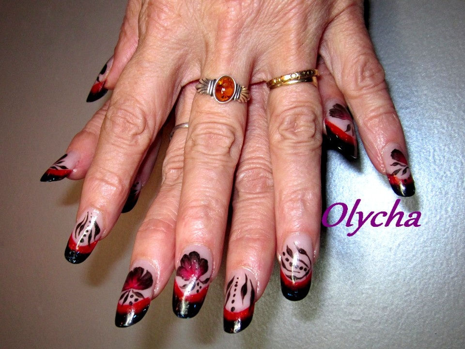 j' avais déjà parlé des ongles de ma maman pour lesquels j' avais quelques soucis , en effet les poses ne tenait pas plus de 10 jours à cause de la ménopause , j' ai essayé plusieurs marques jusqu' à ce que je tombe sur reforma et depuis plus de problèmes ci joint une photo de sa pose avec une repousse de 3 semaines , aucun decollement du coup elle fera 1 semaine de plus car elle aime la déco :) (la pose rouge) , et d' autres poses construction avec les résines reforma