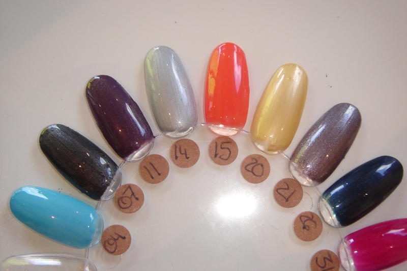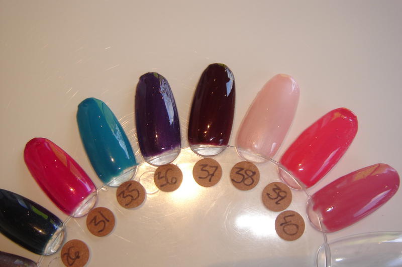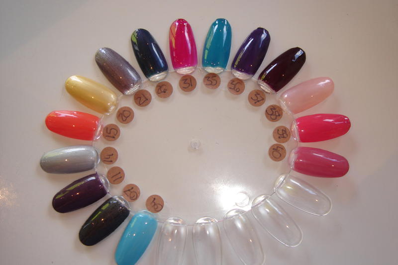 je vous mets des photos de mon nuancier avec les couleurs de chez Histoire d'Ongles (Naility).