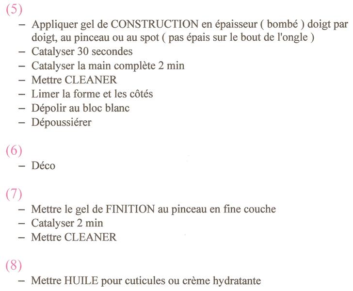 - poser la 2ème couche de french fine sans ôter les résidus, si nécessaire et passage sous UV 4 minutes.