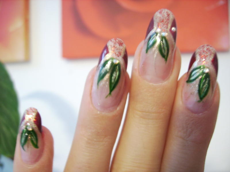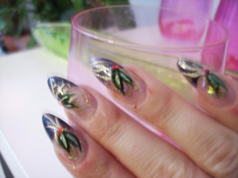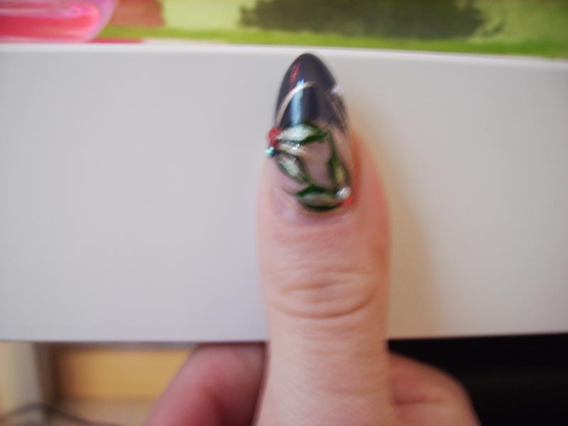 Ma forme de predilection etant décidemment l'amande, j'ai voulu profiter du remplissage de ma main droite pour l'assortir à ma déco ratée et déviée en deco de Noel de la main gauche.... Donc, ok, petit style festif en avance...:36-no-way::frag_facile: