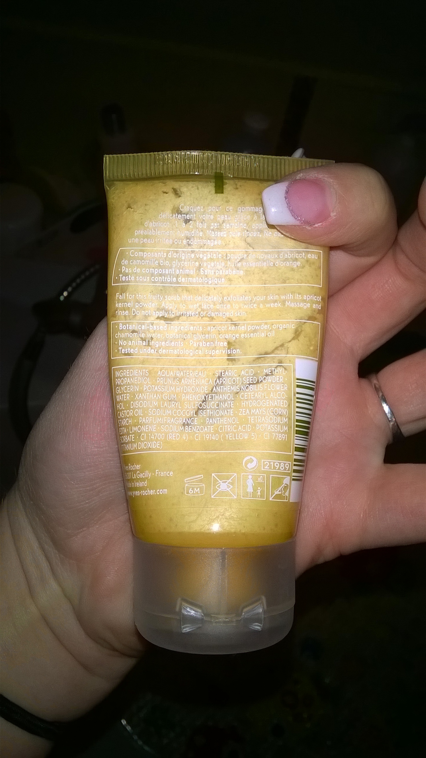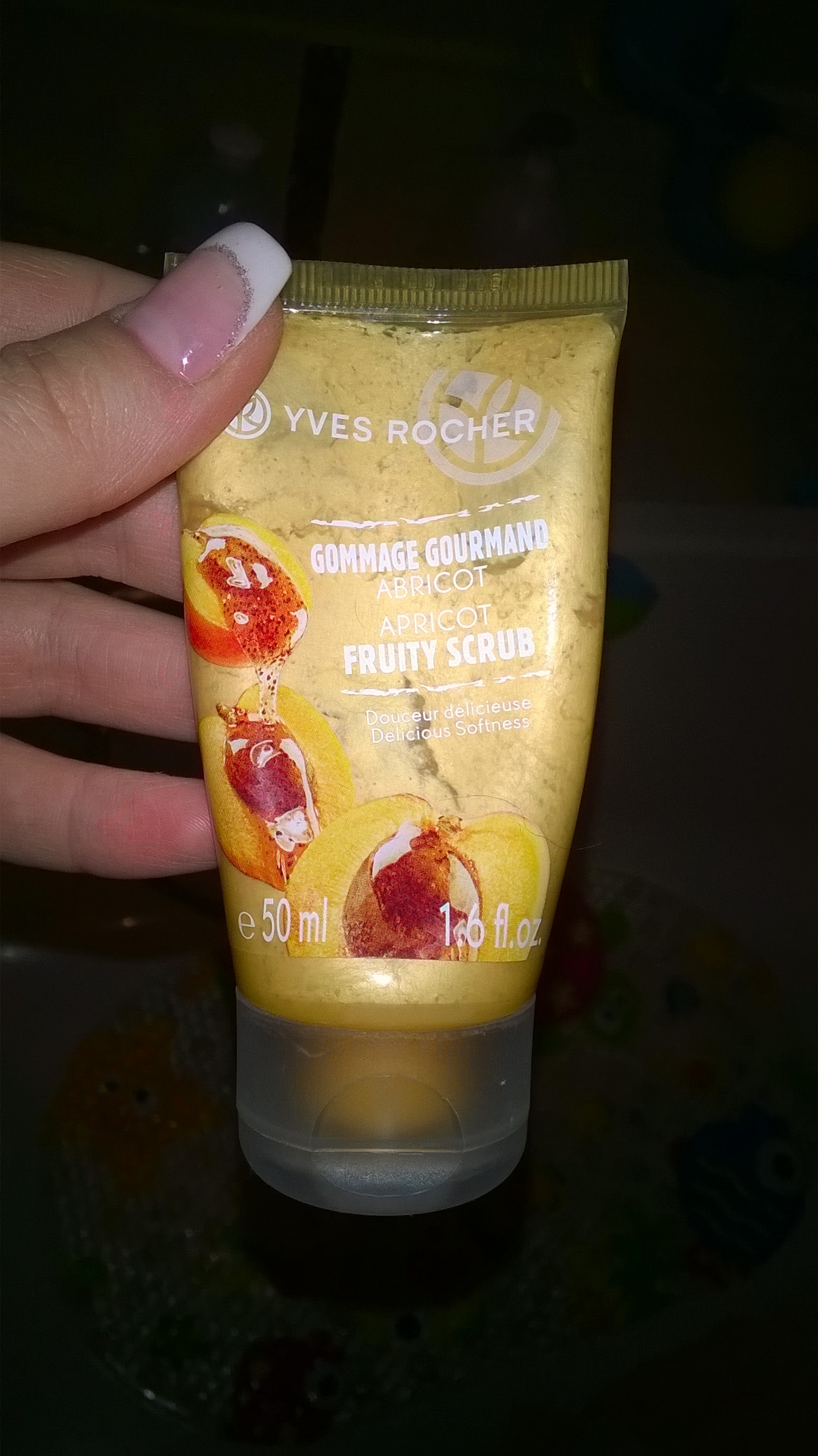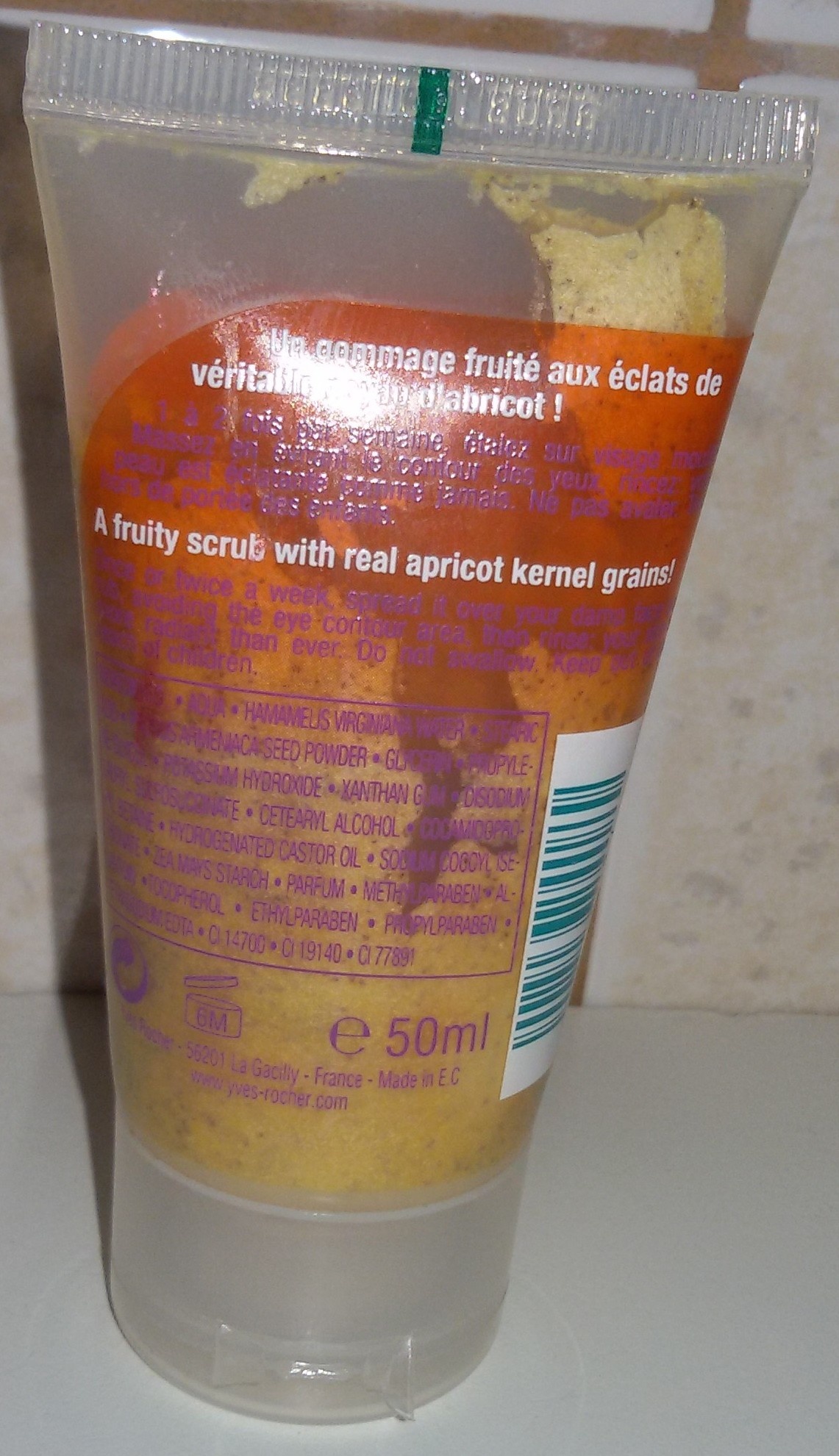 Le Gommage Gourmand aux Noyaux d'Abricot de Yves Rocher qui est dans un tube de 50ml,en seulement une application, votre peau sera lavé depuis l'intérieur, il supprime tous les corps étrangers et les impuretés présentes sur votre épiderme:les cellules mortes et les saletés sur votre peau seront effacées .