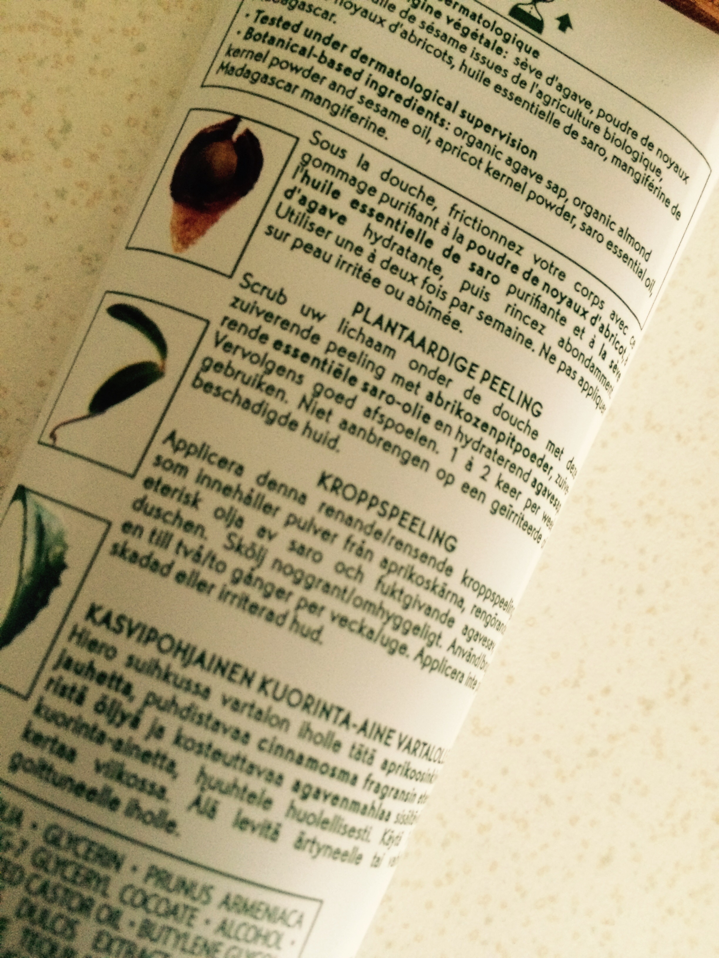 A éviter absolument sur le visage car ce serait trop abrasif, en particulier pour les peaux sensibles. Sur le corps ça passe mais encore une fois, ce gommage n'est pas très agréable. En revanche il produit l'effet gommant escompté.