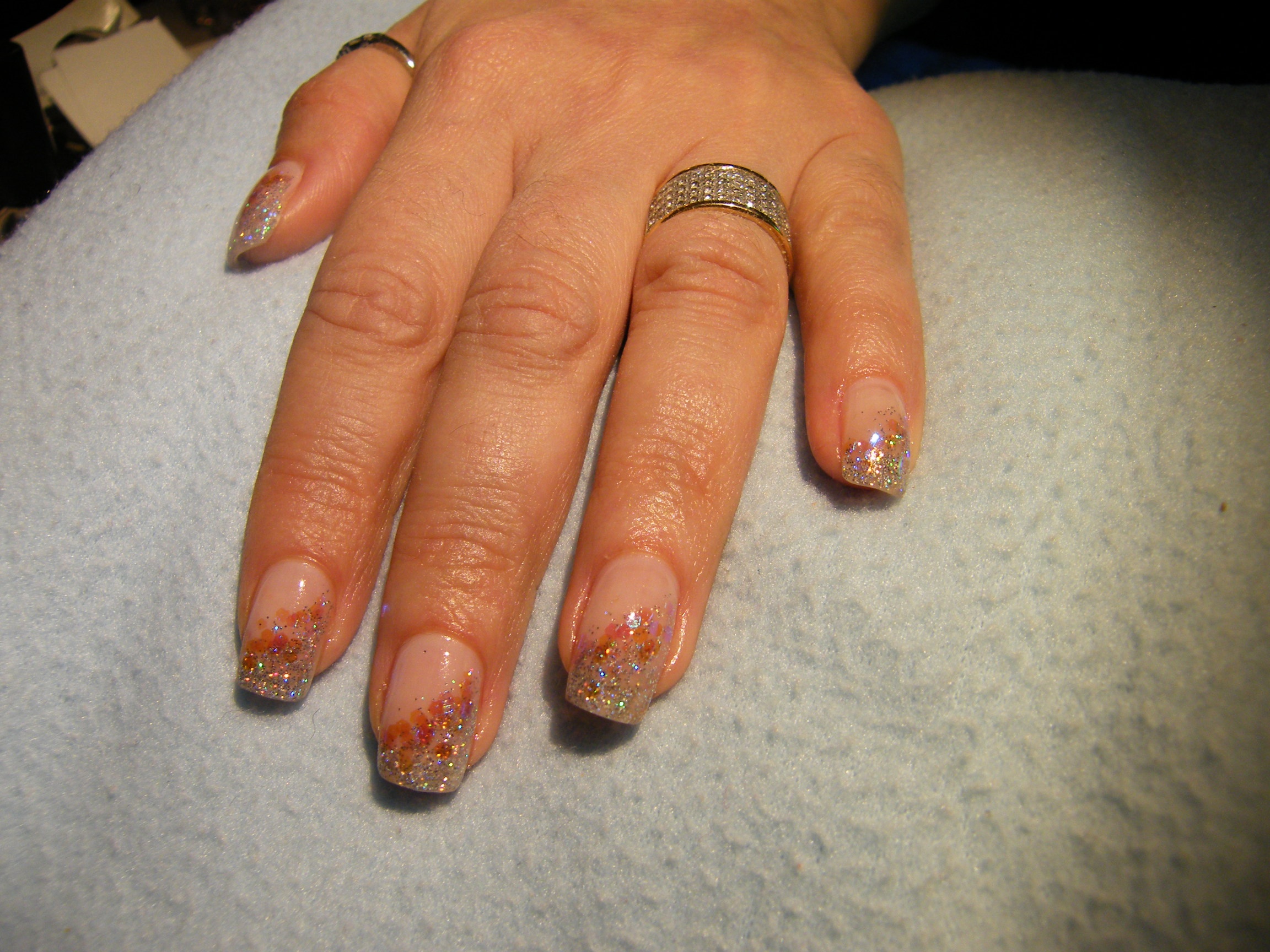 Comme j'ai un moment avant le "feu" de ce soir, je vous montre une pose en Gipsy faite le 17/12 (date de la photo), gainage et rallongement sur l'annulaire au chablon. L'autre photo est le pouce de ma modèle venue hier en urgence pour réparation (elle l'a cassé à ras en fermant une fenêtre), comme elle doit revenir bientôt pour son rempli, j'ai juste rallongé au chablon et gipsy (pas de mask) + essai repro de la déco foils (les foils ne sont pas des willa, ils s'utilisent avec une colle spéciale) +top 2 (il est terrible lui aussi !!).