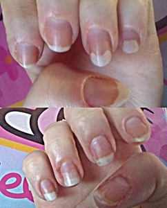 a ta place j'irai chez le médecin ou je passerais d'abord à la pharmacie, pcq ca me parait quand même haut surtout si tu mets du vernis et que tu ne fais pas de limage excessif ( comme ça aurait pu etre le cas pour le gel par exemple )