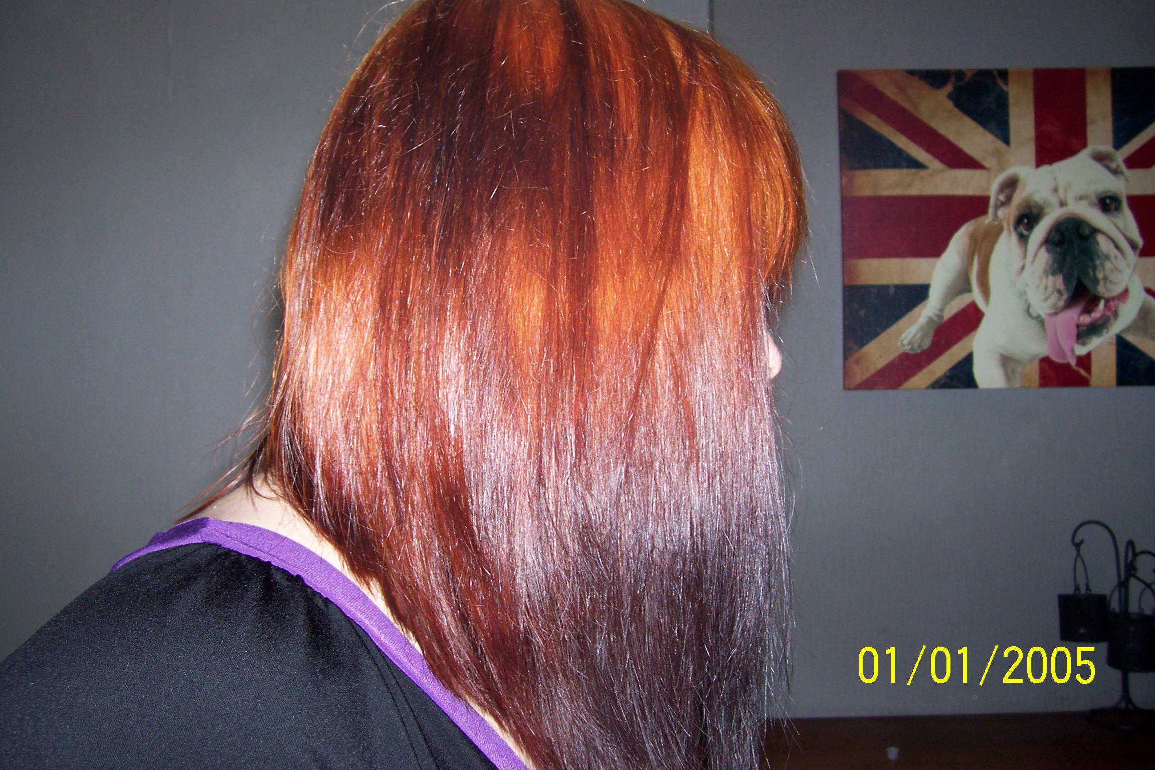oki oki mais je commence par les pointes ou? ici j ai un soin qui est censé remettre des pigment rouge c est de l oreal chroma care