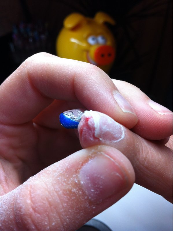 Elle même était limite choquée car elle n'avait jamais eu ça avant, elle pouvait, comme tout le monde, se couper les ongles courts avec la peau du doigt qui dépasse quoi... Enfin je sais pas si je suis claire... Mais la, la peau était carrément collée sous les ongles qui dépassaient encore de 2-3 mm le doigt.