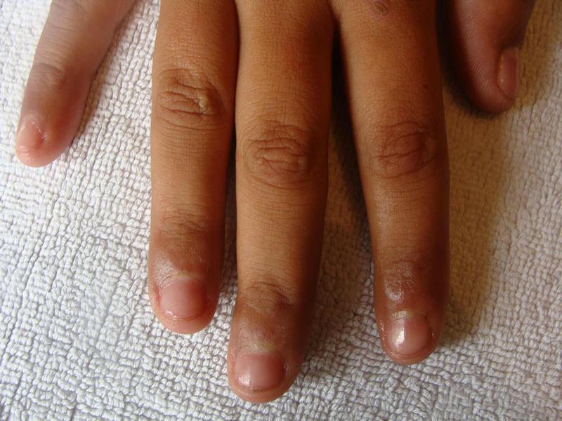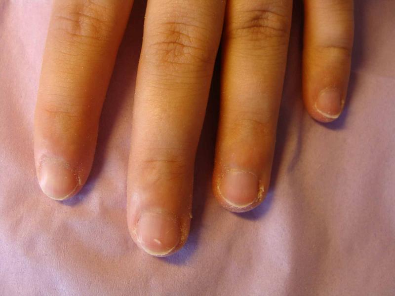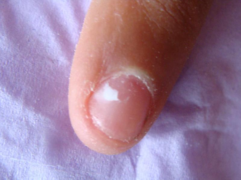 sur les petits doigts, je pense a une tache de manque de vitamines... ce n'est pas une mycose pour moi.
