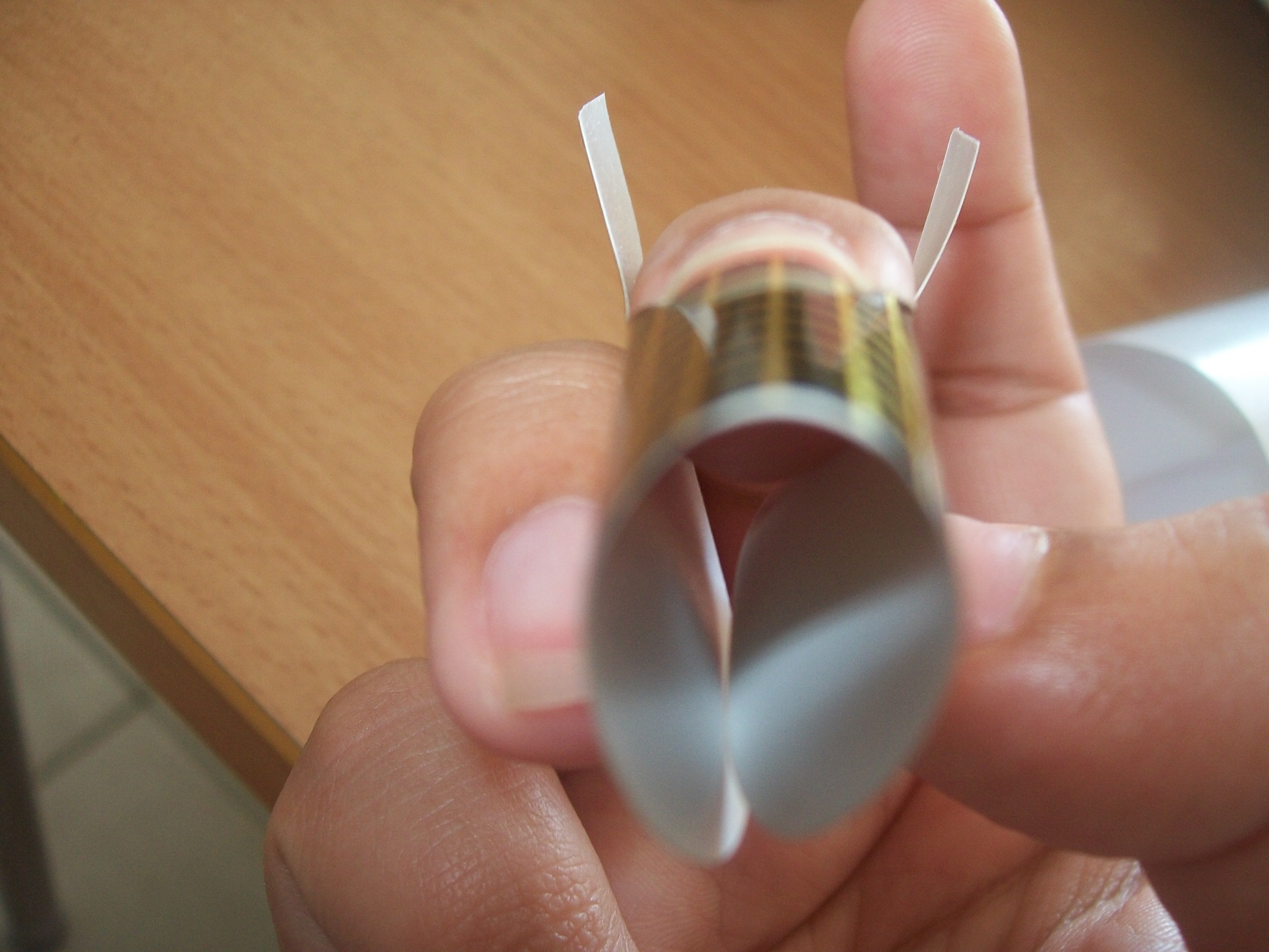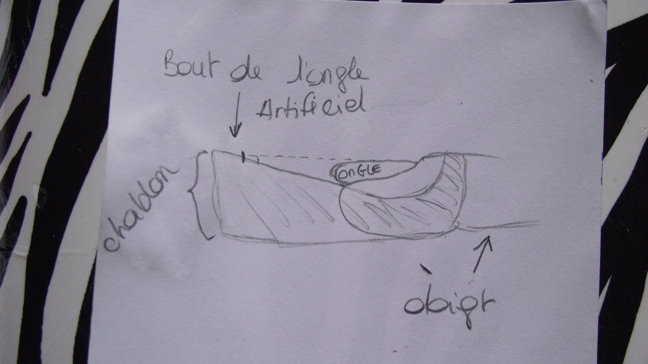 J'essaye de poser mon chablon mais en vain. Il existe toujours un petit écart entre celui-ci et mon ongle. du coup aprés la construcion l'ongle pique un peu vers le bas.