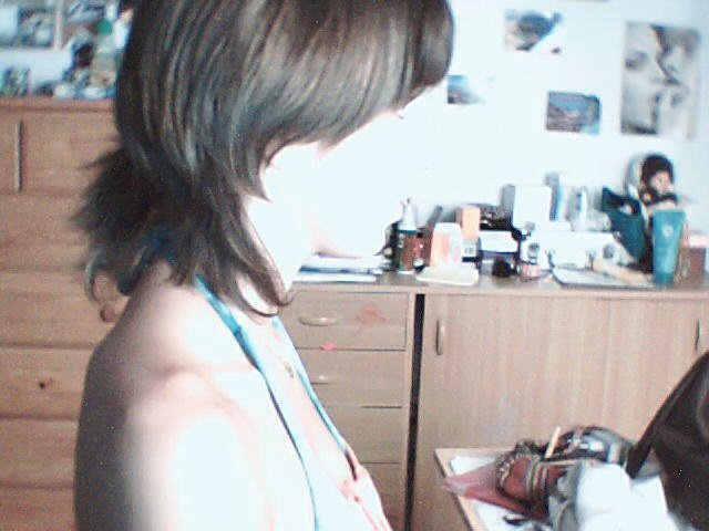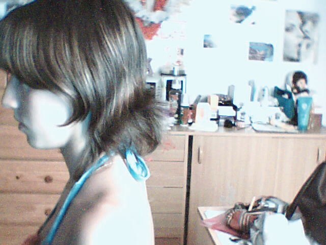j'ai les cheveux ni trop court ni trop long c'est-a-dire que c'est dégradé sur le dessus avec des mèches plus longues en dessous. ils sont châtains avec des "restes" de mèches blondes lol !
