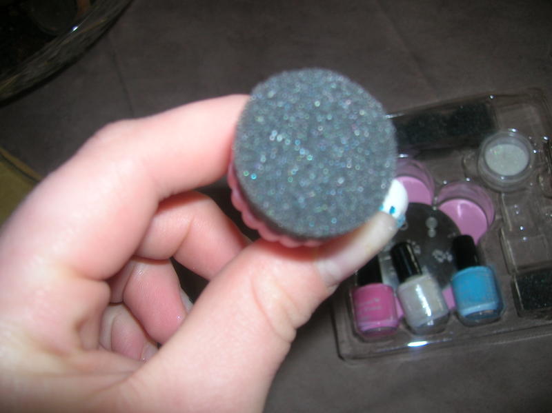 Bah en faite c'est tout simplement un kit konad mais l'eponge pas celui avec les plaques lol avec l'éponge tu peux faire des degradé de couleurs sur les ongles :D