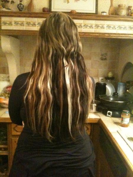 Ouai... J'ai commandé 160 meches. il m'en reste 35 à poser, je vais le faire je pence. Ensuite il faut que je fasse quelques chose à la couleur qui n'est pas du tout comme la mienne.. (j'avais 1 chance sur 1000 pour que ça soit identique). Donc j'esite, couleur (mais mes points blonds le seront tjs) et méché après, ou faire des mèches pour unifier mais c'est pareil est-ce que ça sera enfin identique ?? =(