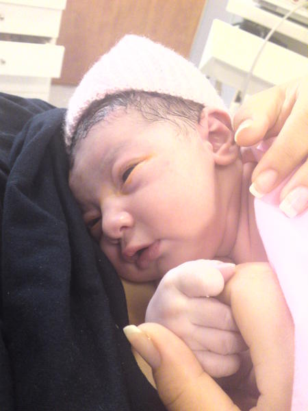 et ca y est ma puce est sortit, mais vu l'urgence c'est elle qui a coupé le cordon....pas grave elle lui a sauvé la vie!!!!!!!!!