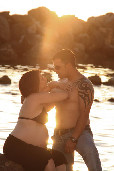 en studio et a la plage( il l'avait jamais fait avant pour des foto de grossesse)