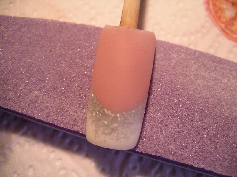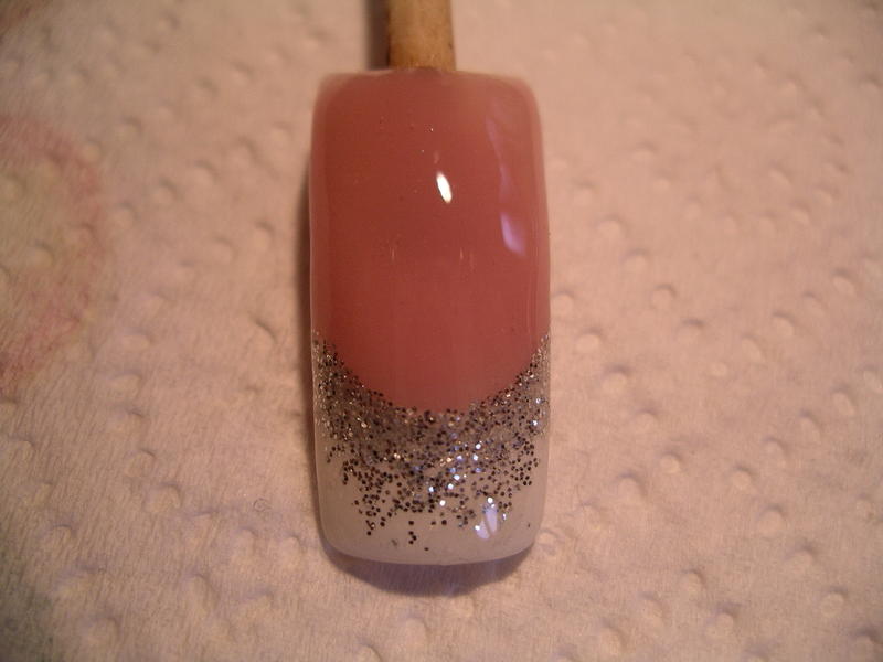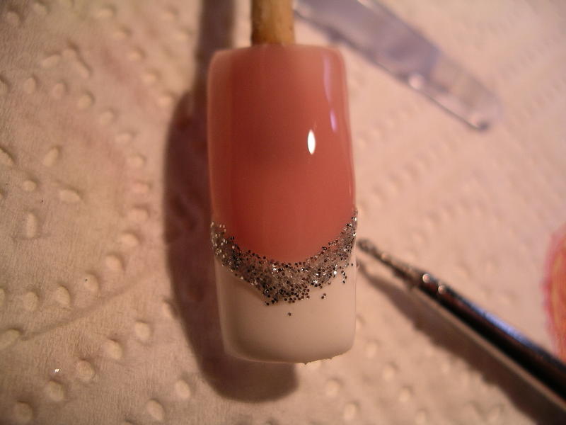 5- Avec le pinceau, étirer le paillettes vers le bord libre. Catalyser.