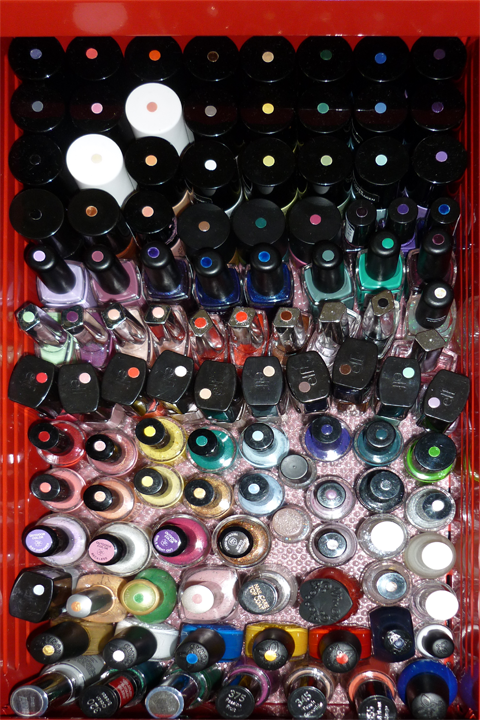 Si vous rangez vos vernis dans une boîte (boîte 100drine sur l'image) il es parfois difficile de reconnaître les couleurs