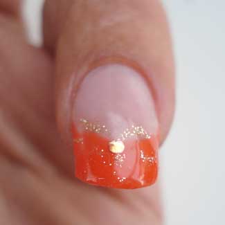 J'ai donc utilisé le gel Evolution Montecito pour mon extension sur papier, un gel camouflage Beauty Nails, pour la french un gel Punch orange de Peggy Sage, construction Evolution, gloss de chez Montecito.