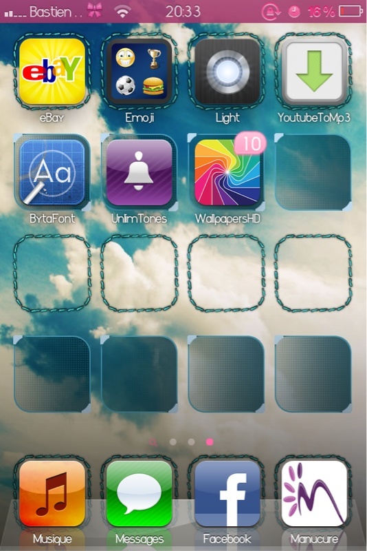 Mannon86 a dit:Je trouve pas l'applis emoji,doit être cacher! Je vais fouiller. Merci en tout cas. Je vais fouiller aussi pour mettre l'applis note en rose, facebook (si ont peux) calendrier etc.....