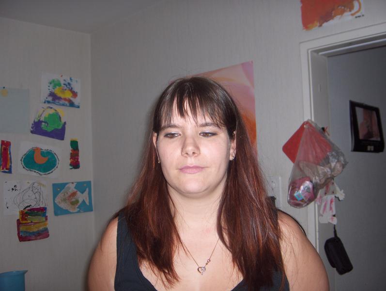 Alors elle a fait un dégradé aux épaules, mais je trouve que la frange est trop courte.