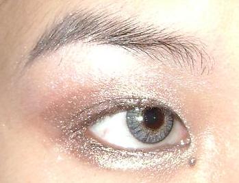 Je mets un peu de fard irisé en dessous de la ligne de sourcils,