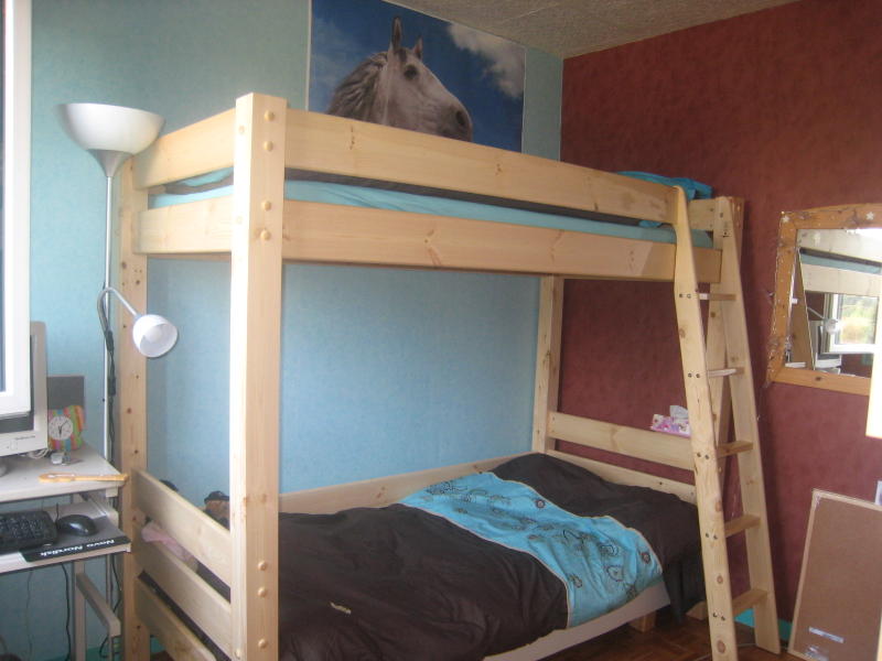 çà m'a pris tout le we entre les achats et le montage... lit mezzanine, lit bas séparé pour emma, caissons Ikéa (5 à monter) portes pour les caissons, vider les cartons (j'ai pas fini)