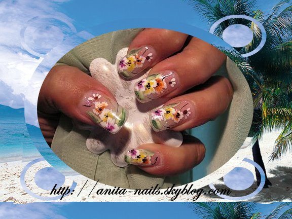 Eh oui voici le premier nail art d'Elynails.......elle est rentré mardi après-midi du Costa Rica et aujourd'hui elle est venue chez moi pour me faire les ongles.....la chance que j'ai!!!!!!!Le 28 Juin je vais faire le cours chez elle.......