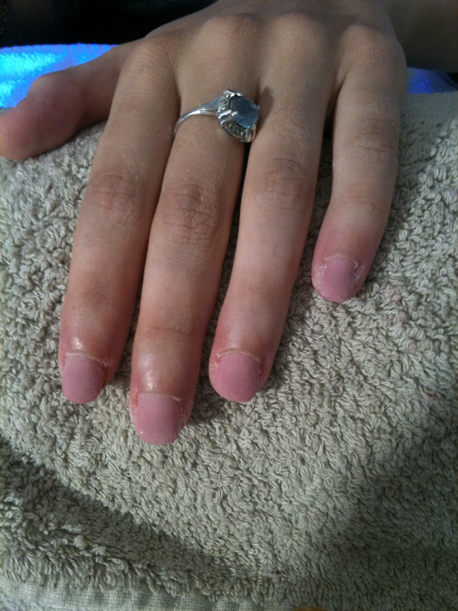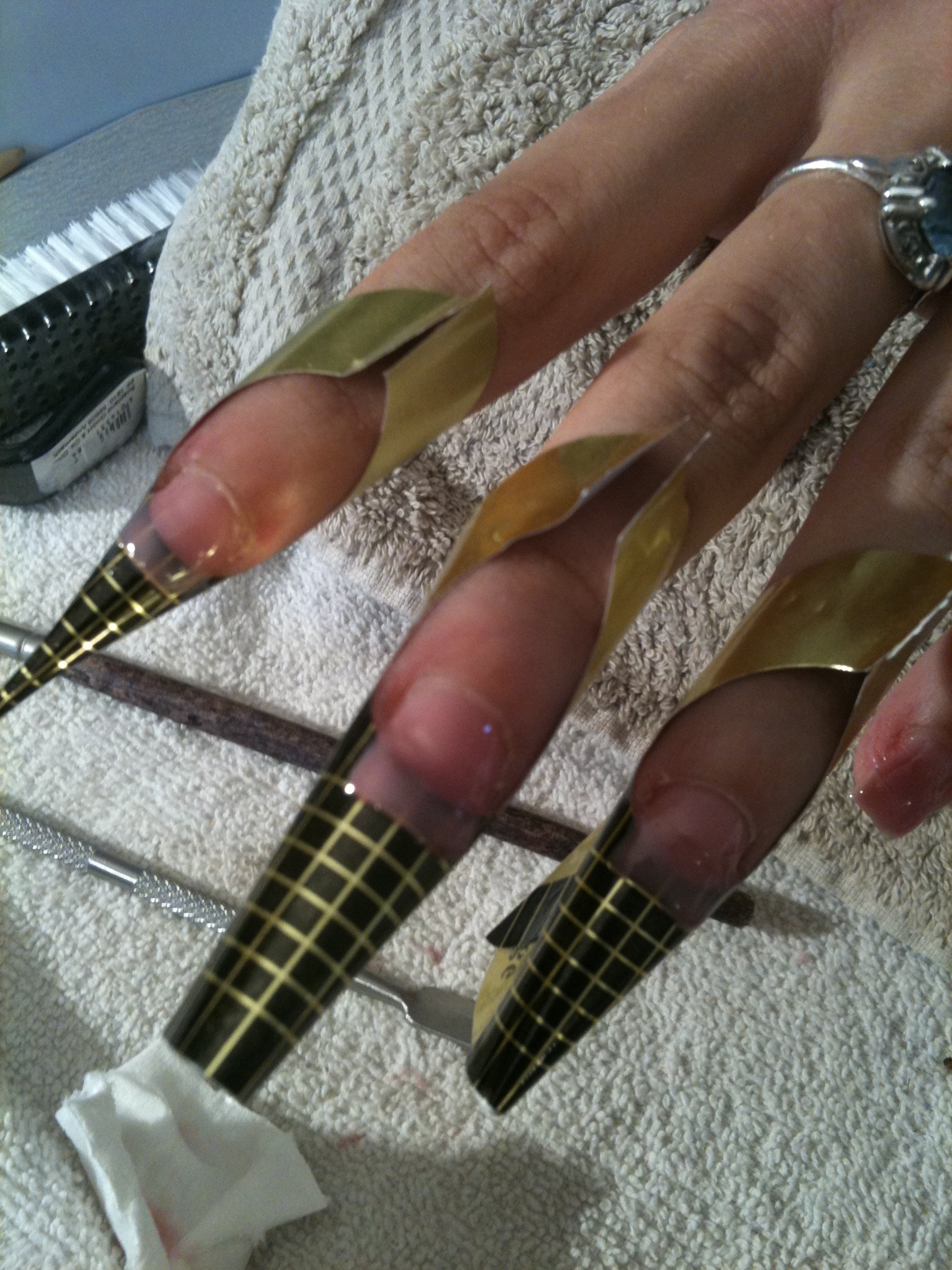 des nouvelles de ma rongeuse..... et bien 1 ongle de cassé SEULEMENT jsuis contente, par contre toujours pas contente de mon boulot, je vous ai pris plusiseurs photos, j'ai essayé de mettre mon chablon plus loing, de bien limer en amande pour affiné... enfin sur le papier j'ai essayé de faire tout comme il faut, me le resultat ne me plait pas !!! ma cliente super contente car ca pousse ... et elle trouve mon boulot super jolie et fin !!!! on a pas les meme yeux!!!