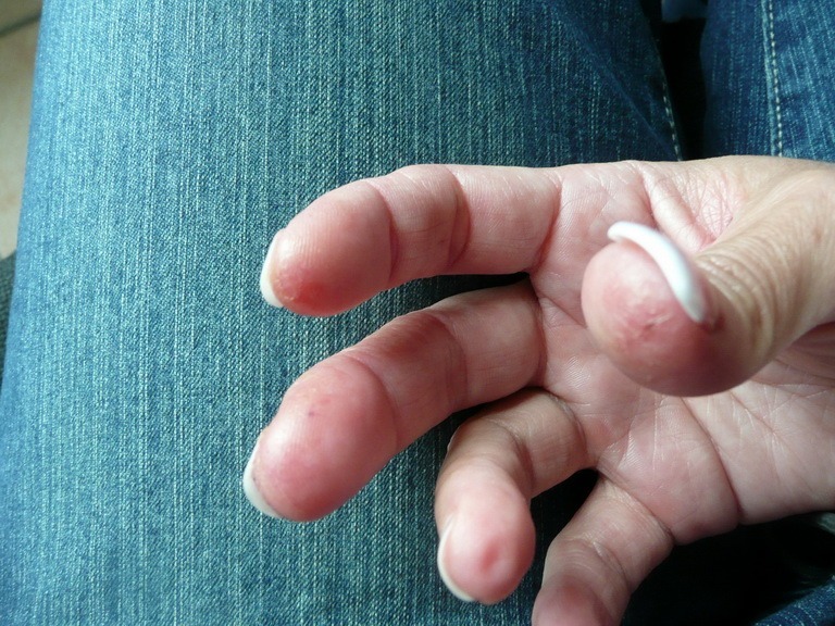 après dix jours au repos mes mains ont morflé dés la reprise (photos ci joints) j'ai fais deux poses aujourdhui et j'ai souffert le martyr