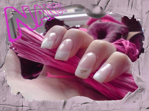 et paillettes blanches nacrées en biais sur la french de tous les doigts (ca se voit pas trop sur la photo en fait