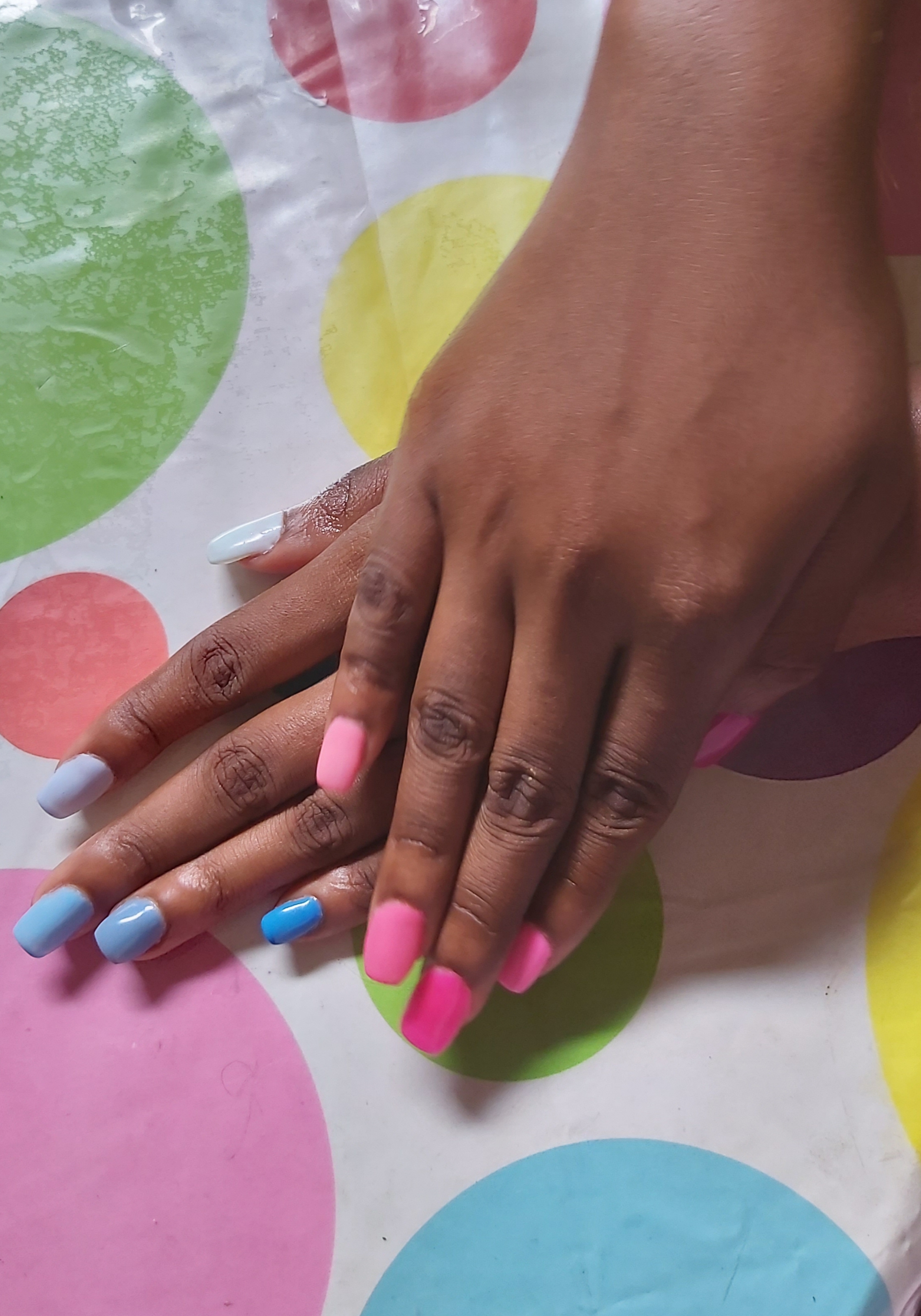Tu débutes et au niveau de tes poses , tu débordes souvent sur les cuticules , gros risque de décollement , çà ne tiendra pas et cela ne fait pas très propre, il faut laisser 1 mm entre ton gel et les cuticules , çà manque de bombé sur certaines , c'est important pour la tenue ,