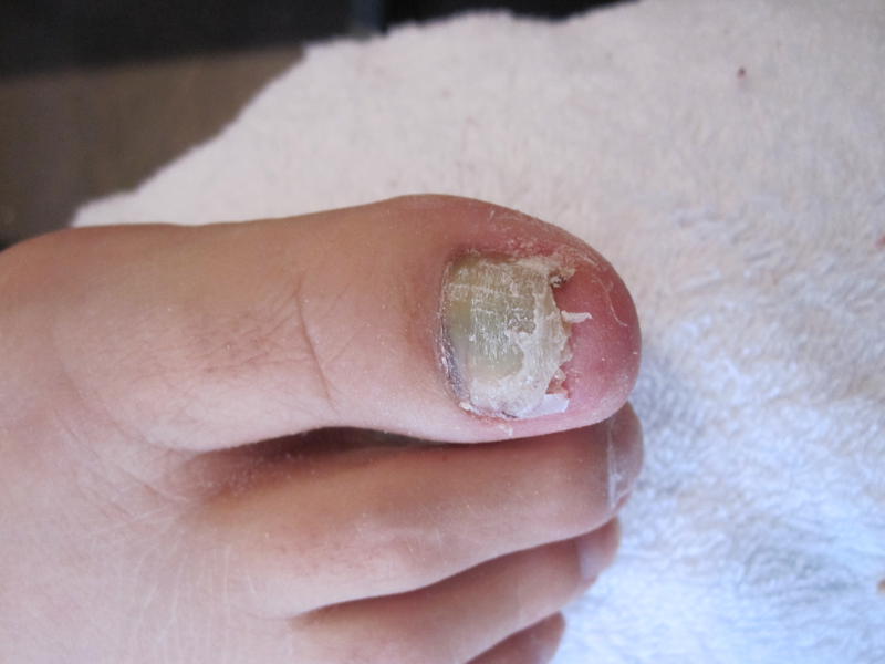 quand elle s'est enlever la chaussure rien qu'a l'odeur quand jai eu le pied sous le nez jai compris ce quelle avait, INFECTIONS!!!elle avait une pose o mains et o pied en bordeaux donc impossible de voir la couleur de longle!!!