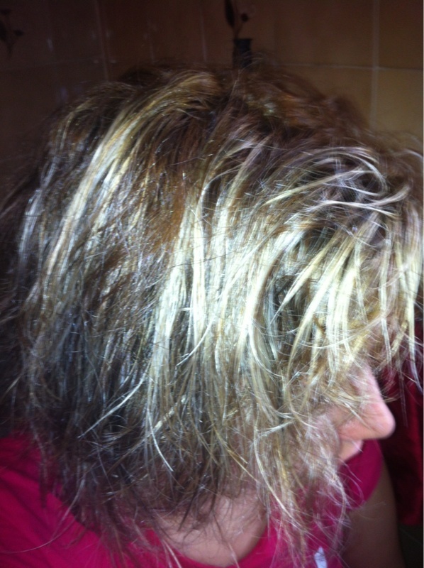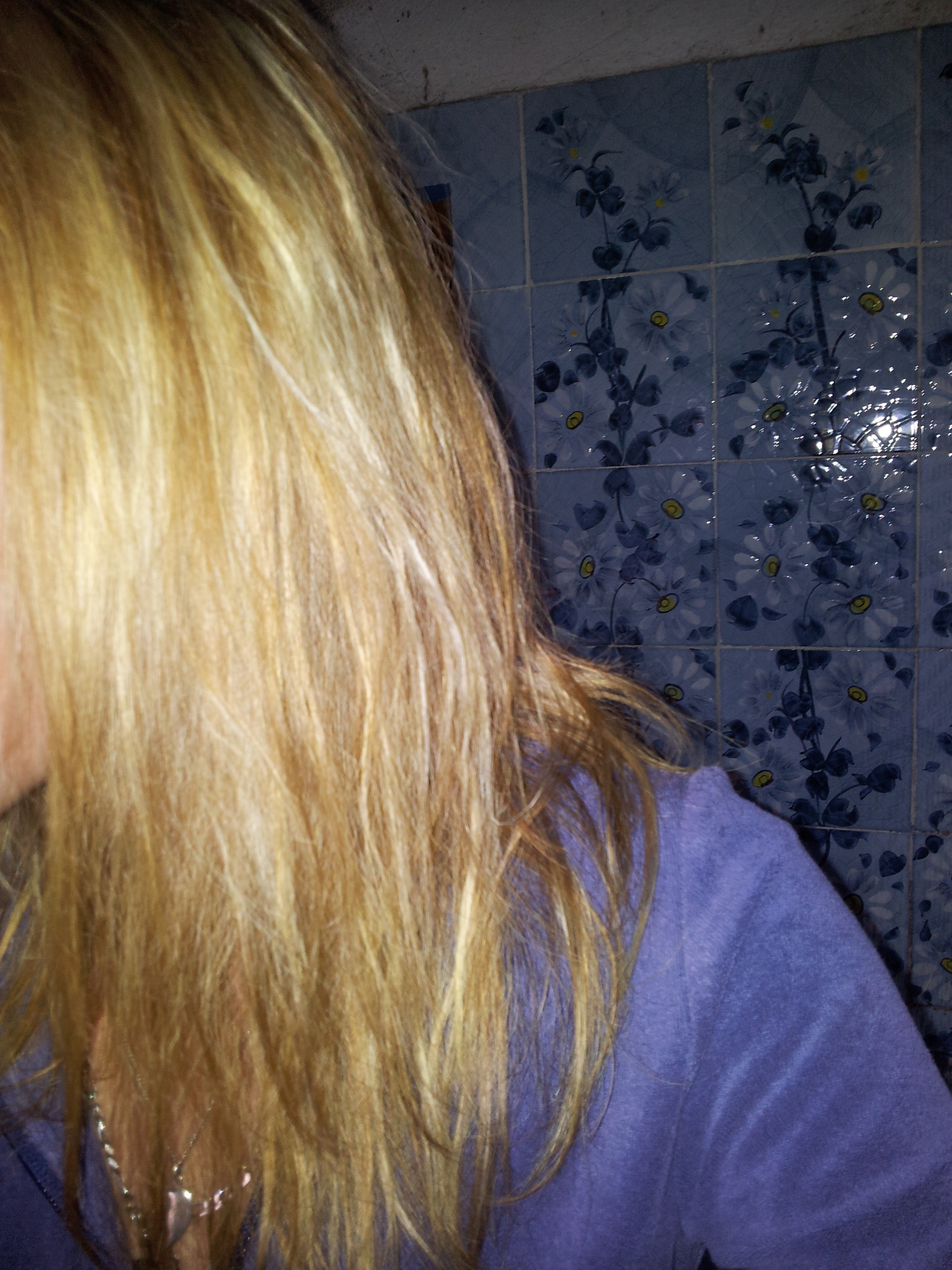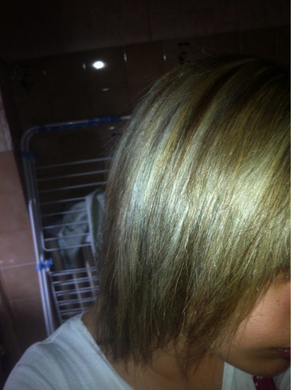 BON alors je viens de faire la photo à l'instant je sors de la douche donc il y a des mèches encore un peu mouillé et le flash ca fait un peu jaune alors que ca l'est pas du tout lol