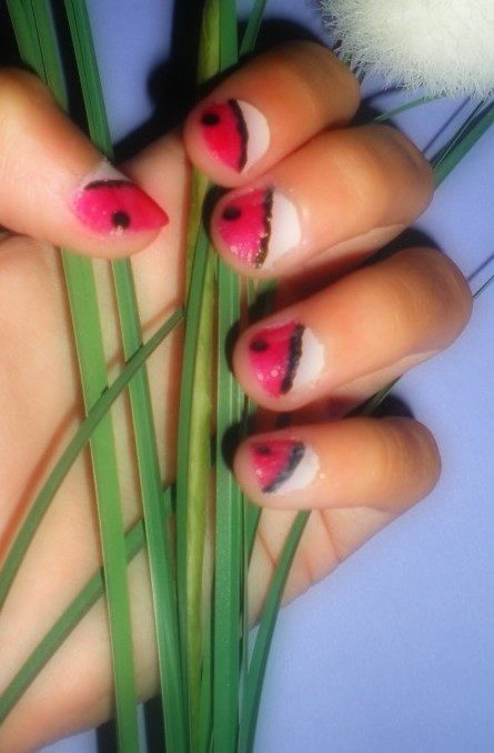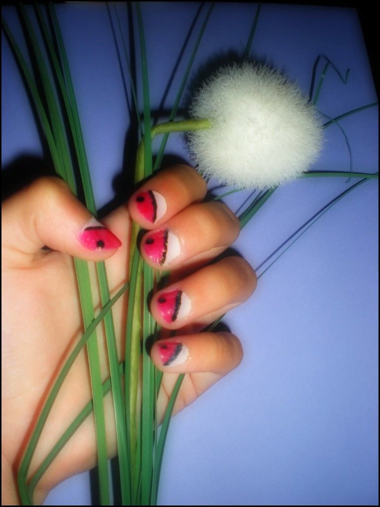 ma technique, avec le pinceau pas trop imbibé, je pose le pinceau au milieu de l'ongle, puis j'appuie un peu, et je remonte tout doucement vers les cuti. les poils du pinceau s'écartent au fur et a mesure et s'arrondissent et prennent la forme de l'ongle.