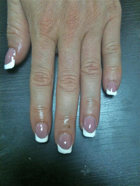 ce matin la modele n est pas venue on a pu voir le spa des mains et j ai refais un peu de decos et entrainement pour pose french complete. l apres midi petit ralongement dommage j avais reussi ma pose mais c est loucher sur la french le sourire est a un metre du sourire de dessous et donc n est pas caché. j ai compris mon erreur c est le principal! bonne petite journee donc pour moi! et toujours ravie de ma formation qui est vraiment complete :fool: