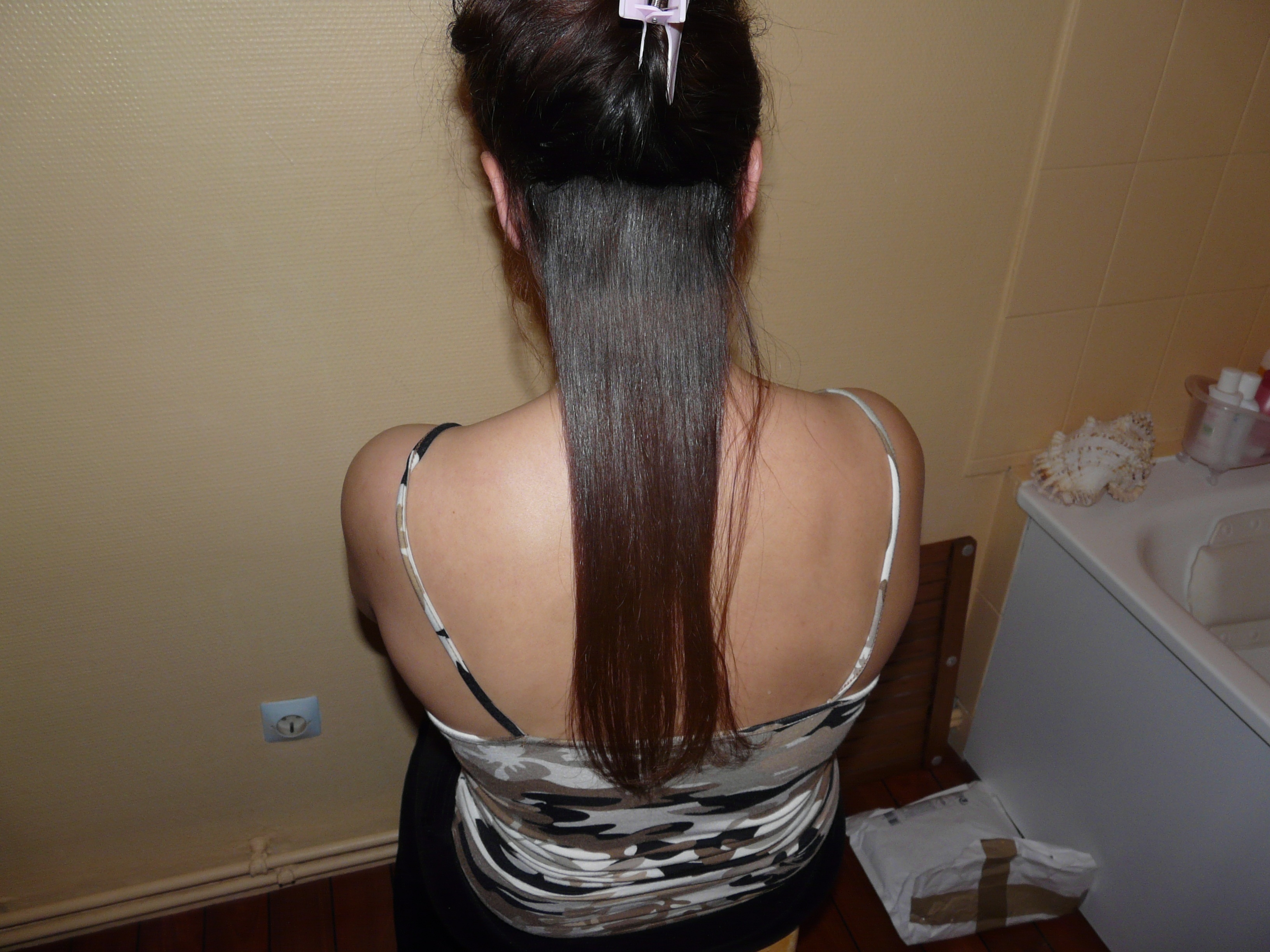 et les photos suivantes sont donc apres lissage kee mee !! cheveu brulé !! 6 heures de travail pour obtenir cela !!!!!!!!