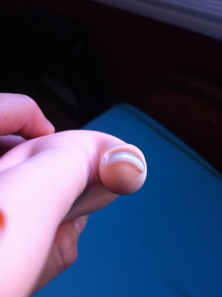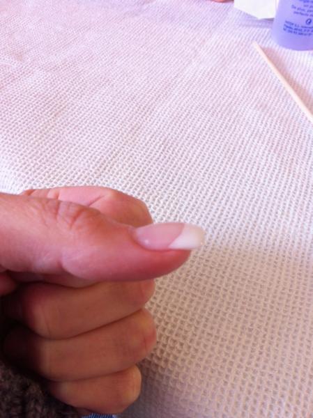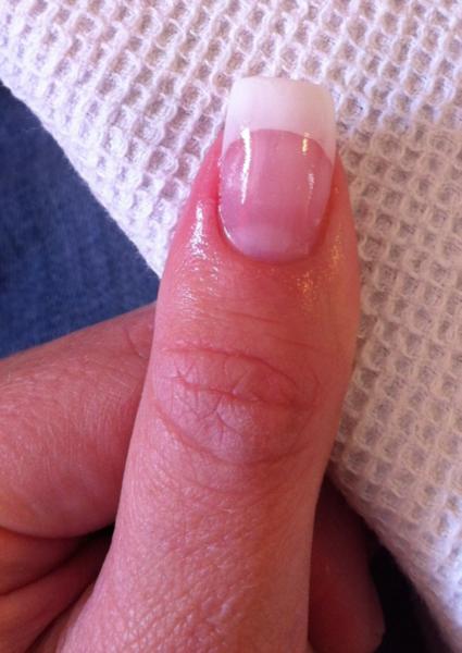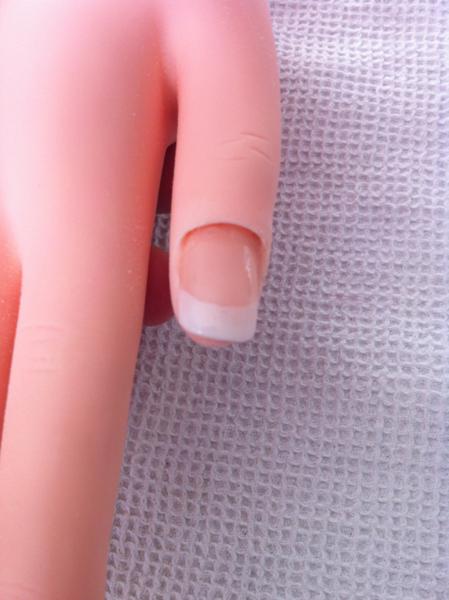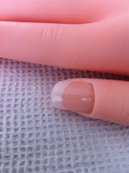 Merci beaucoup pour tous ces conseils. J'ai acheté un nouveau pinceau et c'est déja plus facile tout comme les capsules... premier essai sur mon pouce... : french pas assez nette, et trop de bombé finallement... Mais bon ce n'est que le début :)
