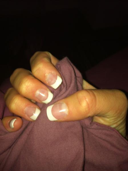 Deuxieme pose sur moi mes avec capsules tips (j'avais pas beaucoup de temps devant moi...grrr) pas assez de bombé mais capsules et produits nettement mieux à travailler...!la troisème pose je prendrais du temps devant moi.....!