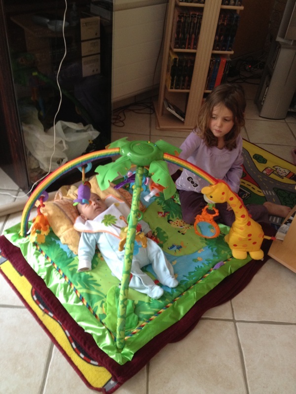 Jenny t'as eu le soleil alors ! Nous aussi mais frais encore enfin on est sorti en tshirt et Léana petit gilet, Lizzie est pas trop habillée dans mon écharpe !
