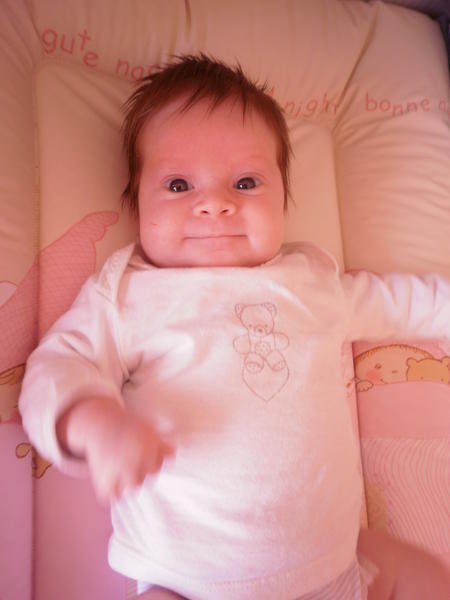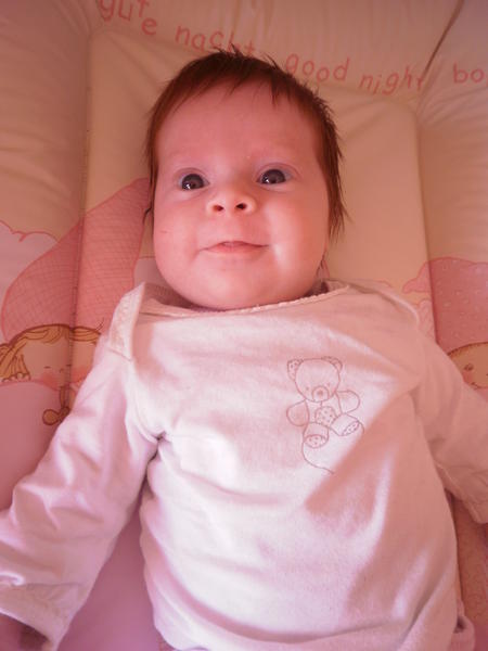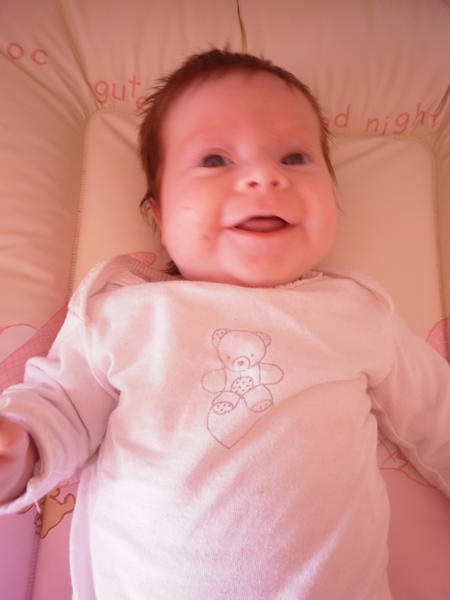 je vous mets aussi les premiers sourires de la mienne qui datent d'hier! une vraie bille de clown!!