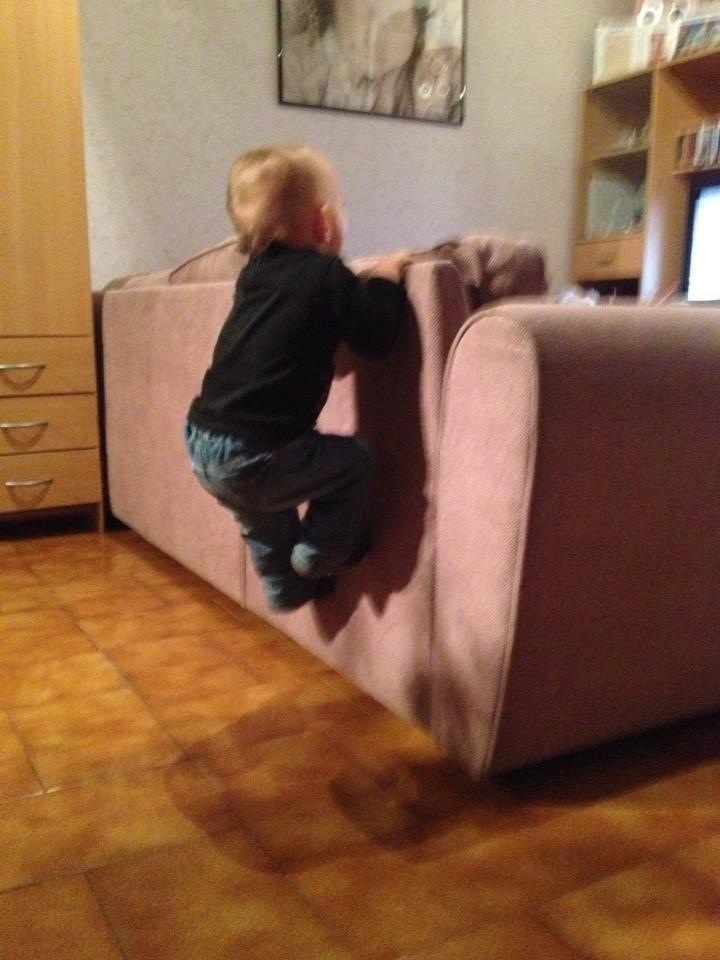 Ben en fait elle se fait qd même sacrément mal car elle tombe de tout son poids en arrière et tape la tête ! Elle hurle (forcément) donc gros câlin et ça passe, mais ça lui laisse des marques rouges qui partent qlq TPS après, mais tjs sans bosse ni bleu.