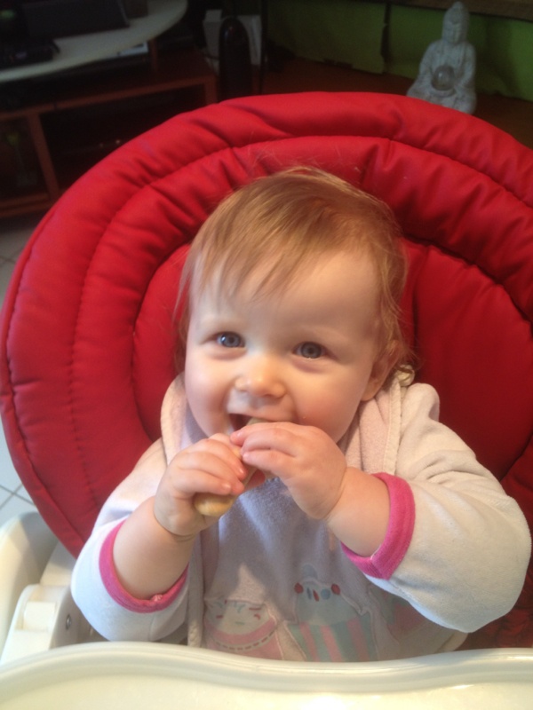 tu peux essayer le blé aussi, la mienne adore! je lui coupe en petits bouts maintenant mais elle a mis du temps à s'y mettre, au début elle voulait que du mixé parce que sa allait plus vite et qu'elle avait pas besoin de mâcher! lol