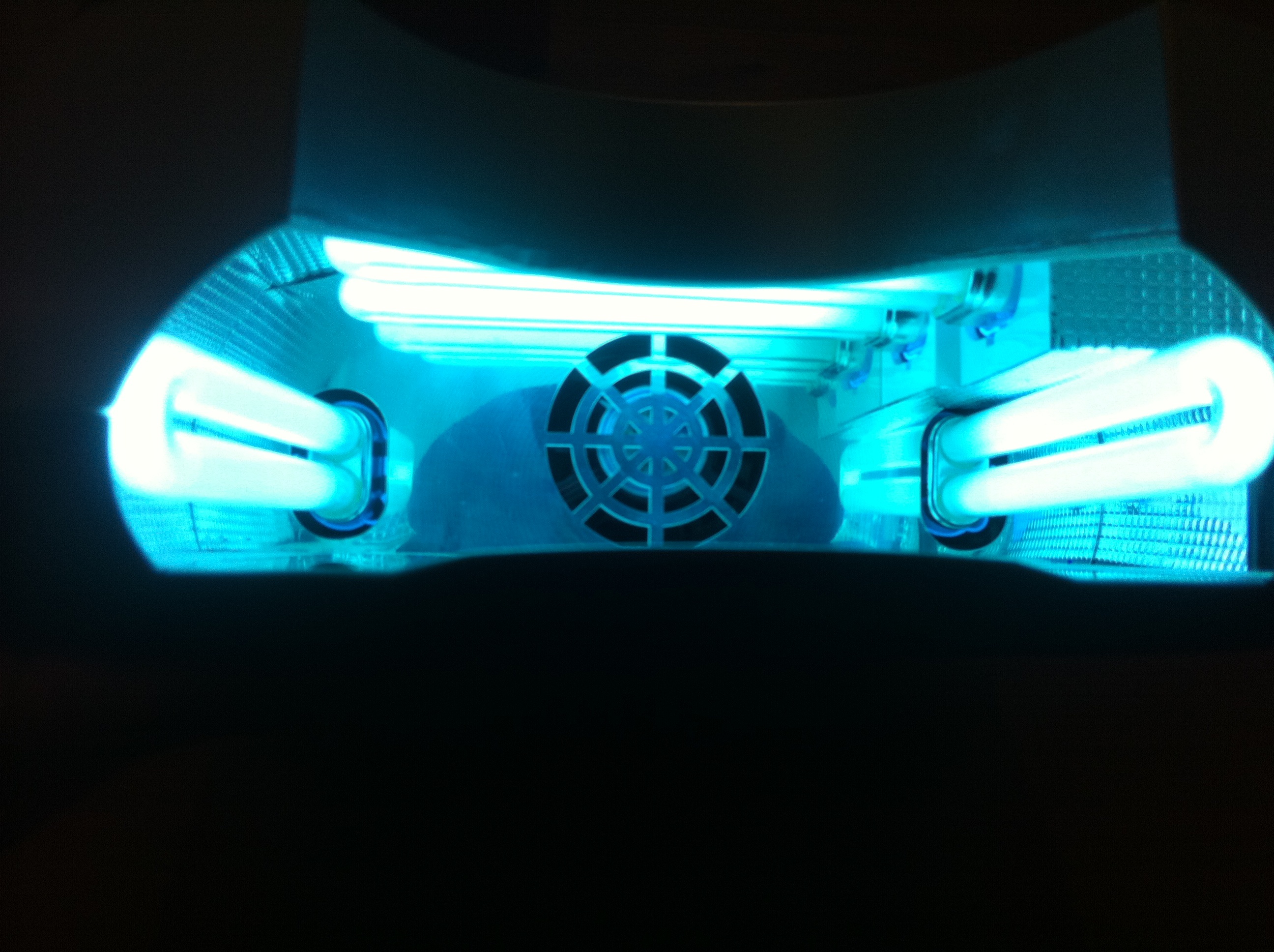 Avant j'utilisais des lampes avec la meme disposition des neons (en verticales) et j'avais pas mal de problemes de catalysation avec en prime de mauvaises surprises une fois le cleaner(degraissant) passé... Puis comme tu peux le voir sur la photo j'ai fait l'acquisition d'une lampe a neons disposés verticalement et horizontalement et ca catalyse très bien.