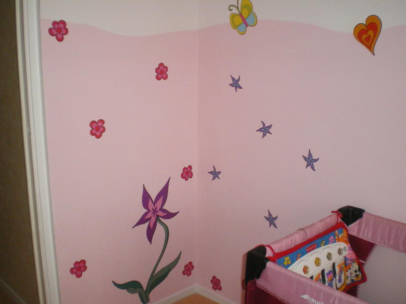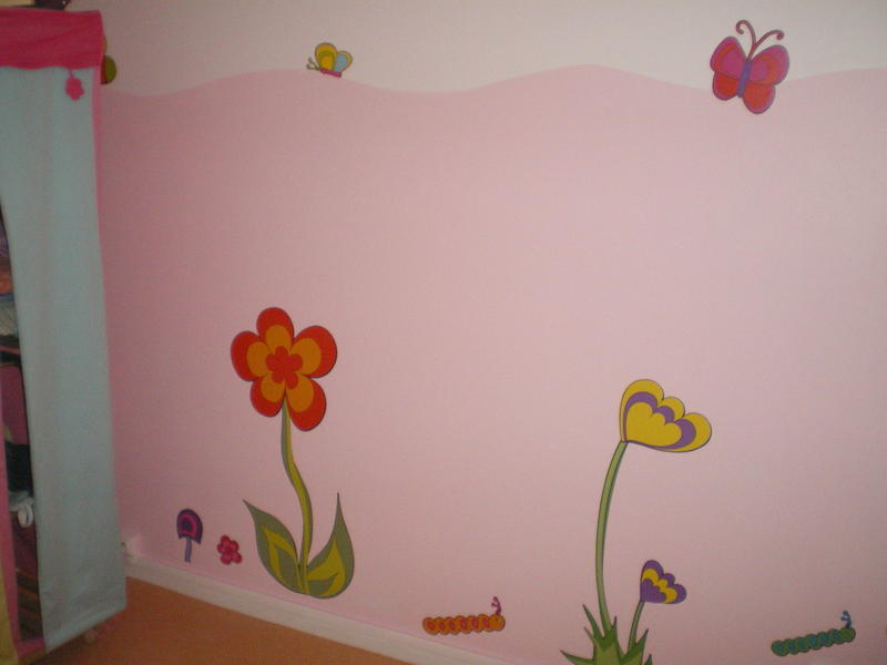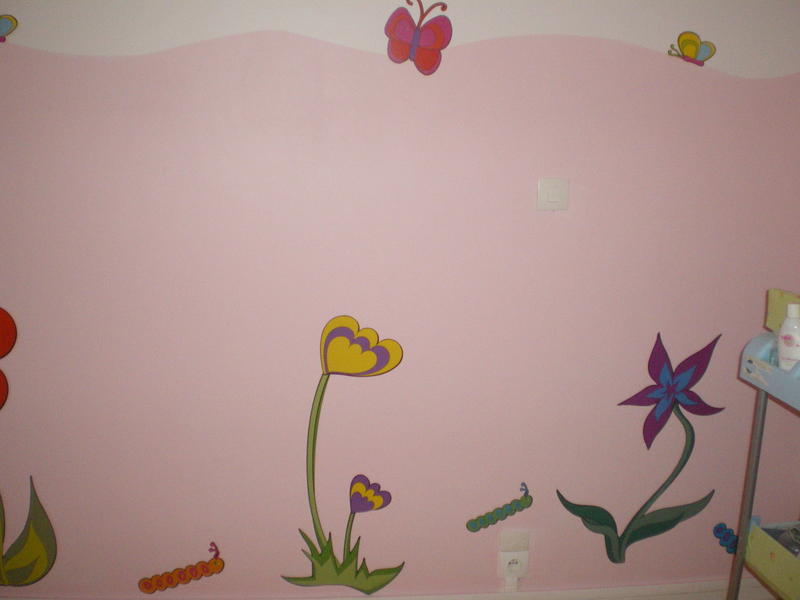 bonjour je voulais voys montrer la nouvelle chambre de ma fille tout d'abord jai enlever l'ancien papier peint puis jai passer 3 couches d'enduie parce que il y avait des trou patout c'était horrible (vu que ces du beton)ensuite jai fait la peinture et pour termimer des stickers par contre faite pas attention je n'avait pas fait son lit lol