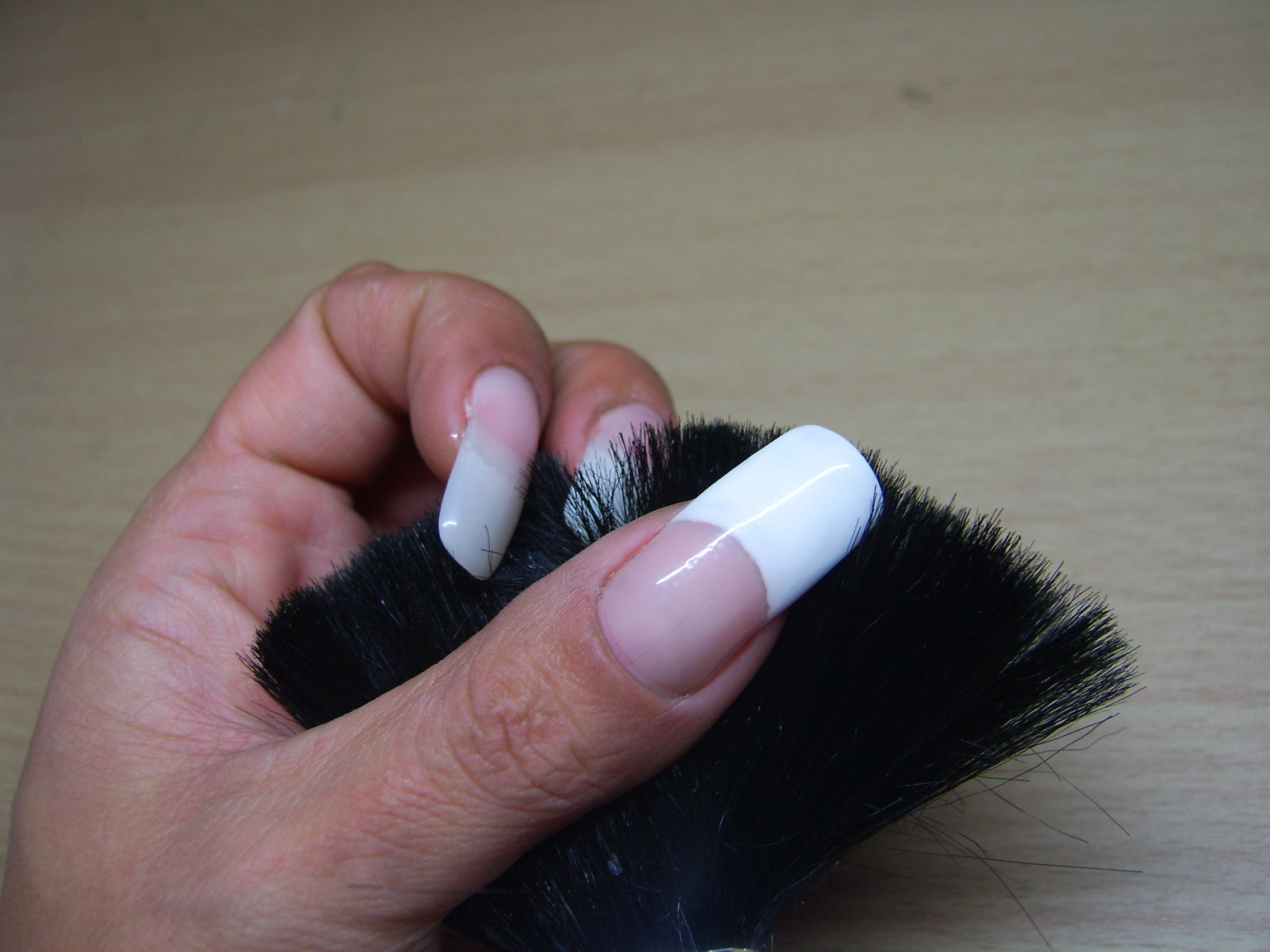Différentes techniques : pose french gel sur chablon pour le pouce, tip's sans french sur les autres doigts on voit la démarcation maudite démarcation!! Et c'est pas faute d'avoir limé!