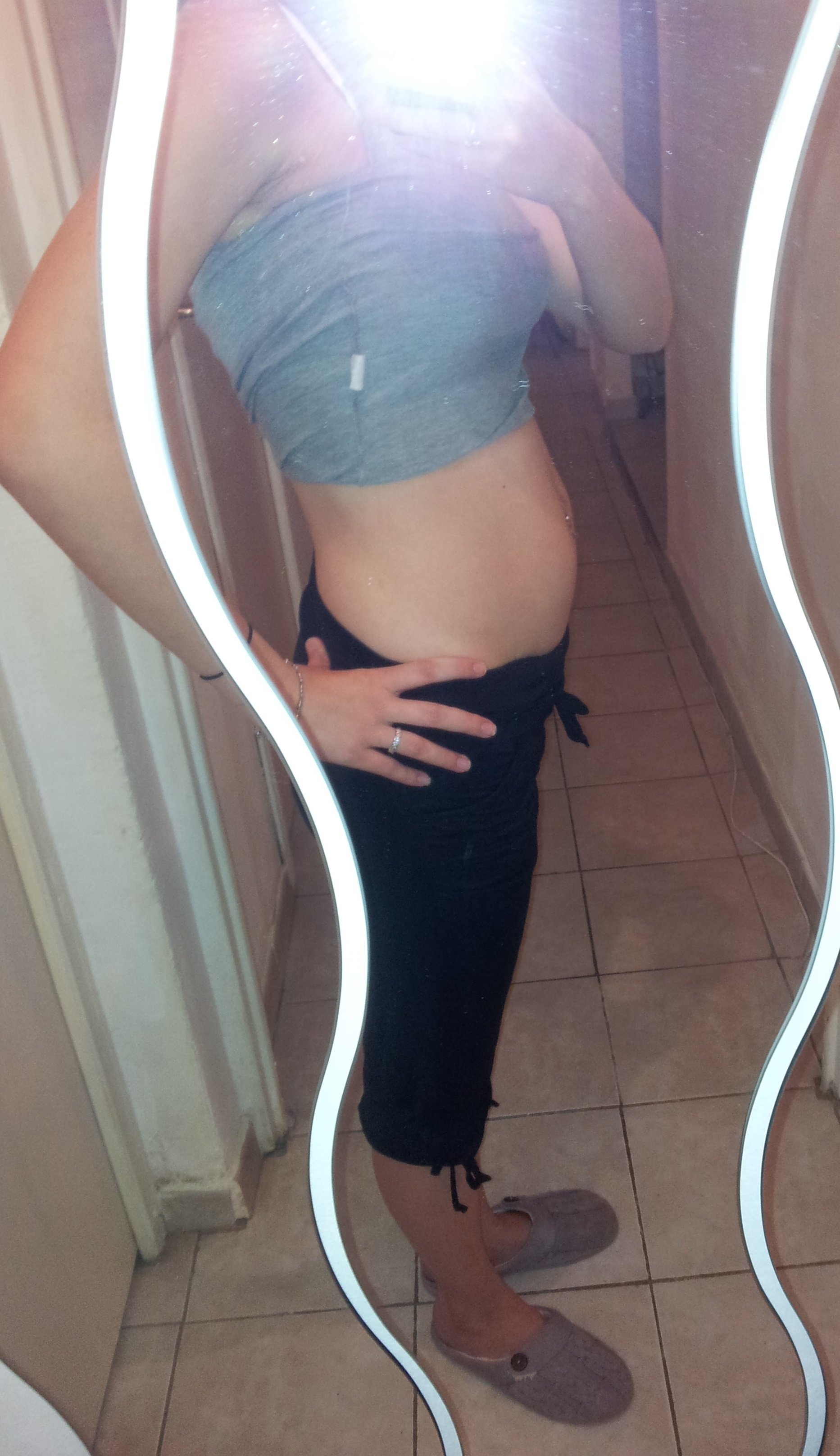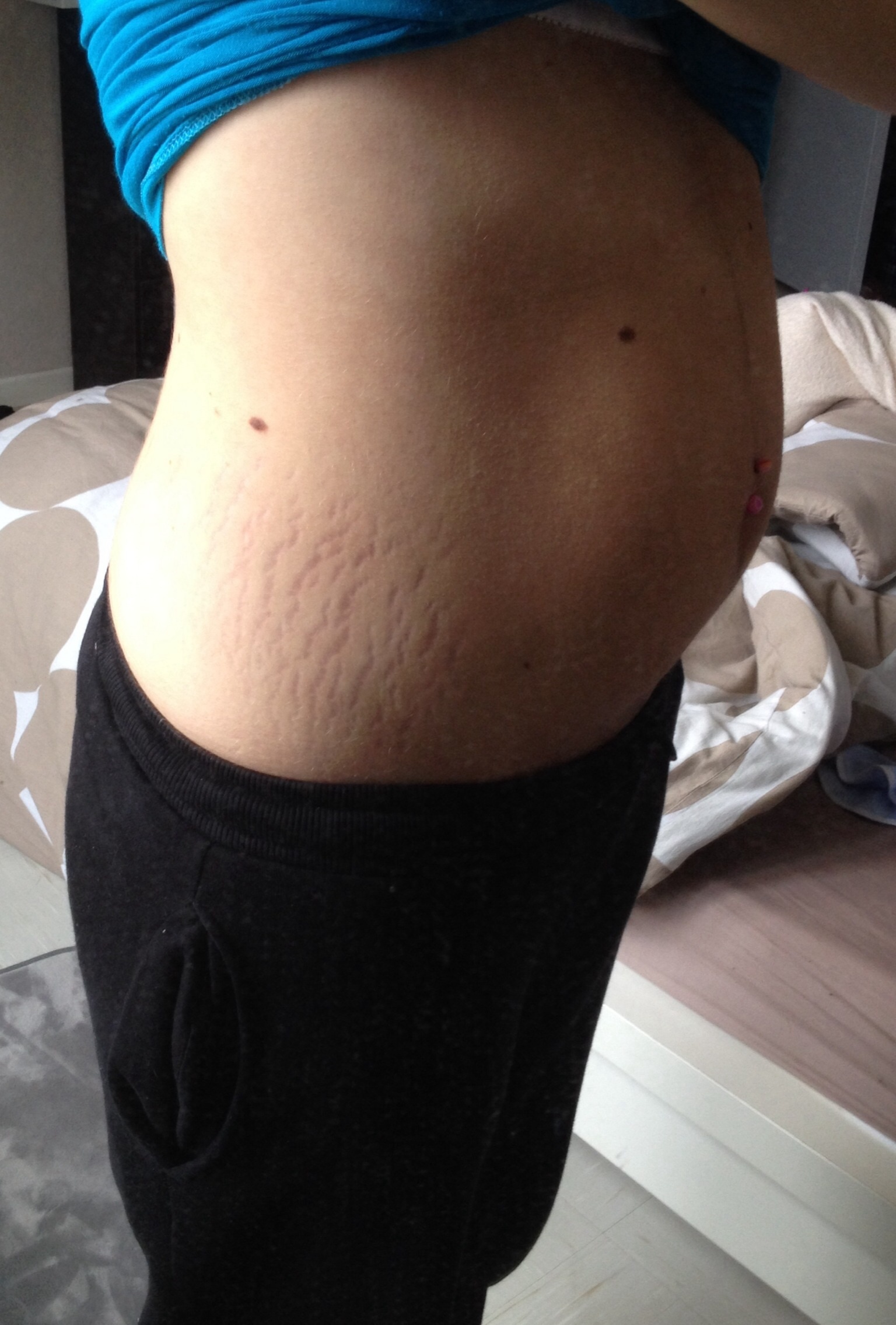 Aujourd'hui les points négatifs c'est mon reflet dans le miroir, je me donne entièrement à mon fils et même si je reste féminine je ne pense plus trop à ma santé. J'ai la nuque enflée à force de baisser le cou et je ne dors plus. J'ai encore de bonnes rondeurs aux hanches et ventre même si ça s'est bien remis, et des vergetures partout. Ah et puis je faisais du 85D bien galbé et maintenant j'ai perdu en tonicité même si ma poitrine ne tombe pas et que maintenant c'est du 95D, elle est moins ronde