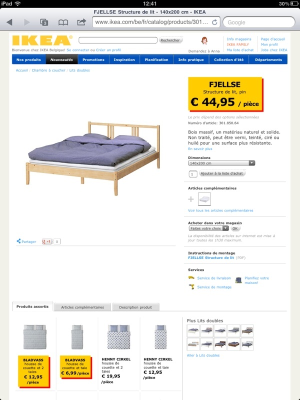Je pense prendre le matelas à ikea aussi, mais le double coute 79 et le sommier c'est 50€.