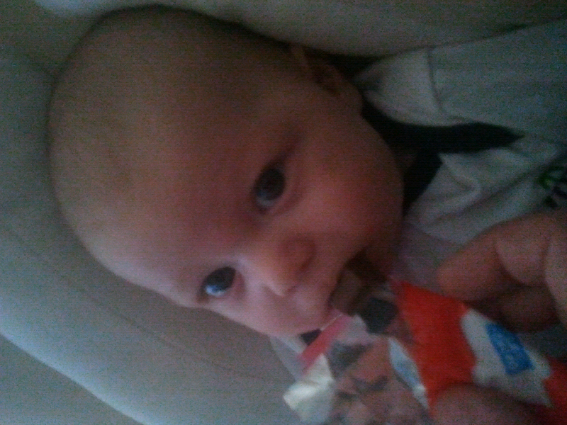 gros dodo pour nous aussi 21h - 5h :D Il m'a sauté deux bibs hihihihi j'aiiiime!!! par contre il avait la dalle il s'est jeté sur le bib loll